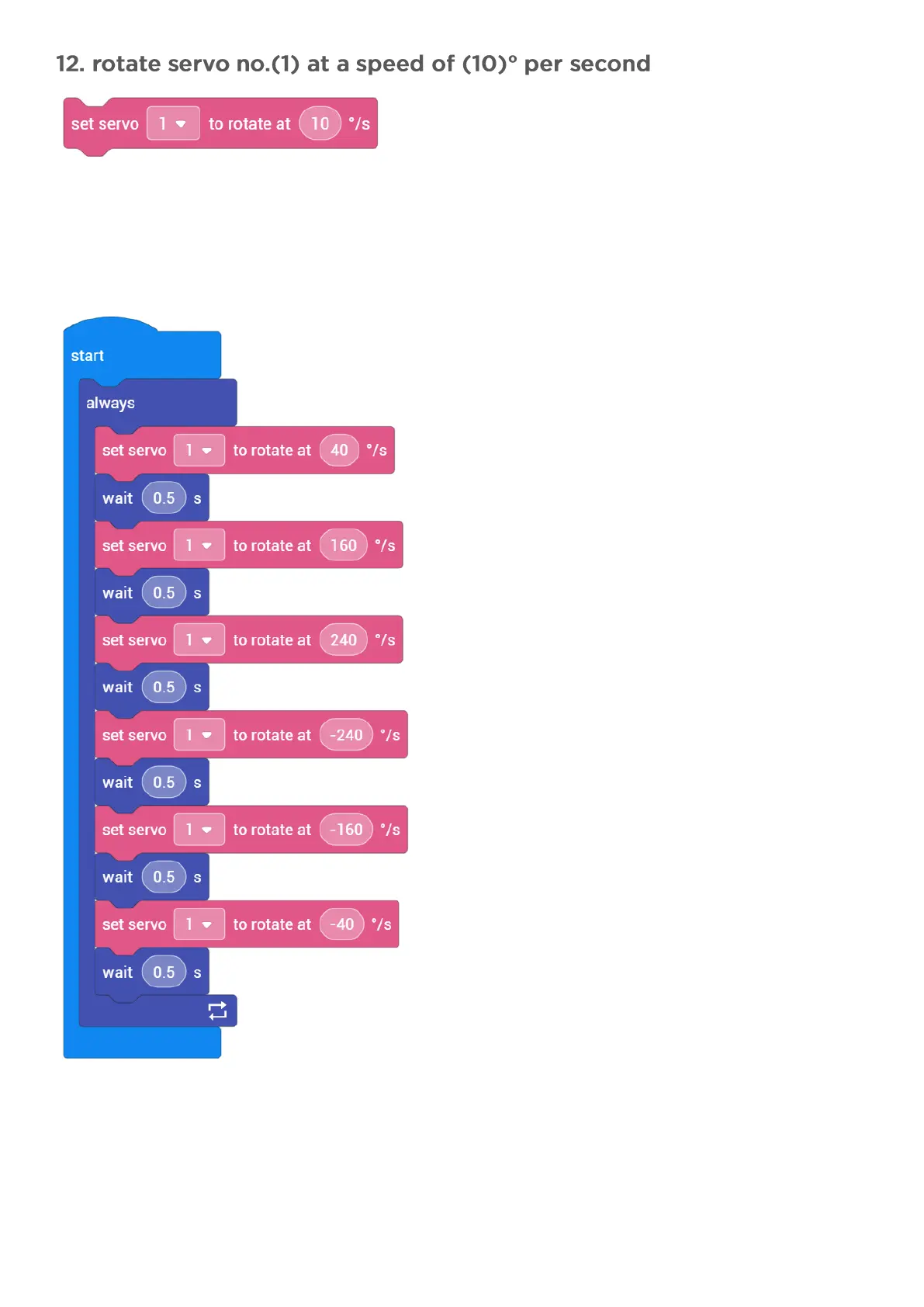 servo rotates clockwise; if the speed is a negative value, the servo rotates counterclockwise.