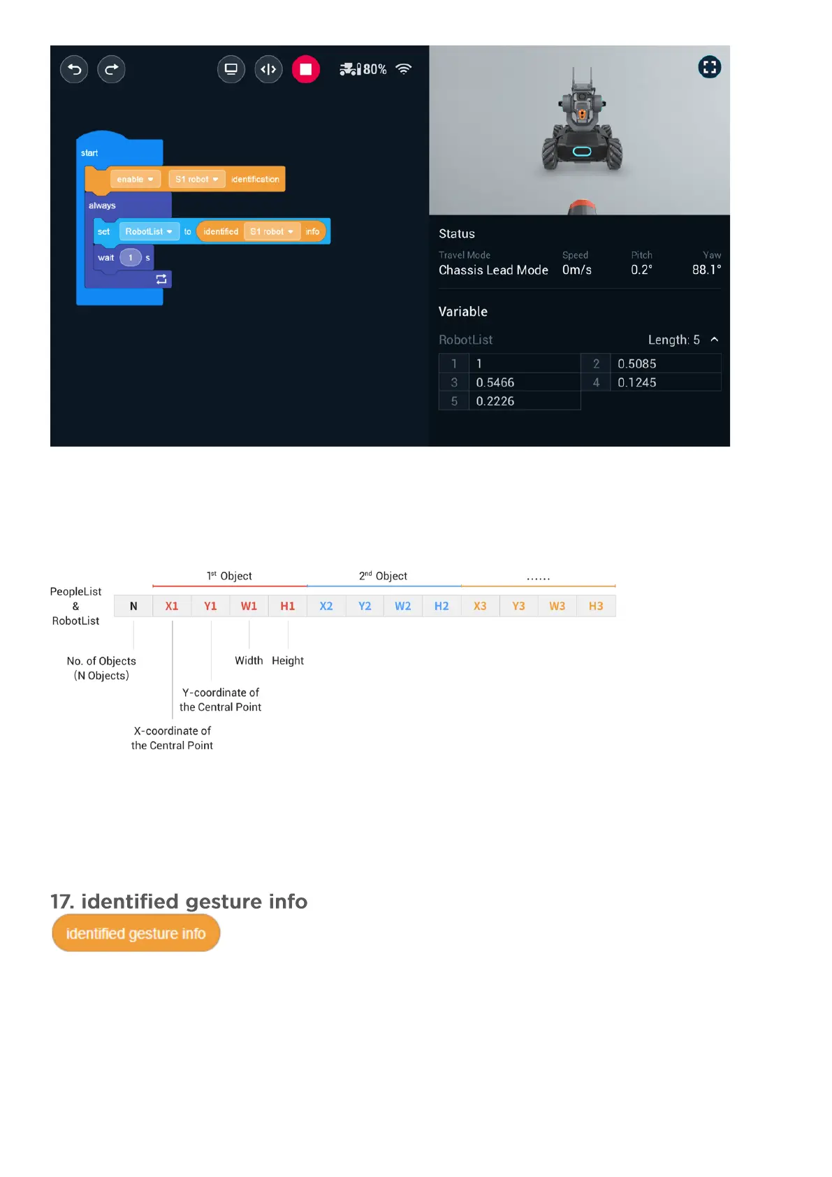 The first item is the number of objects the robot has identified. The second item is a group of 4 numbers: X-