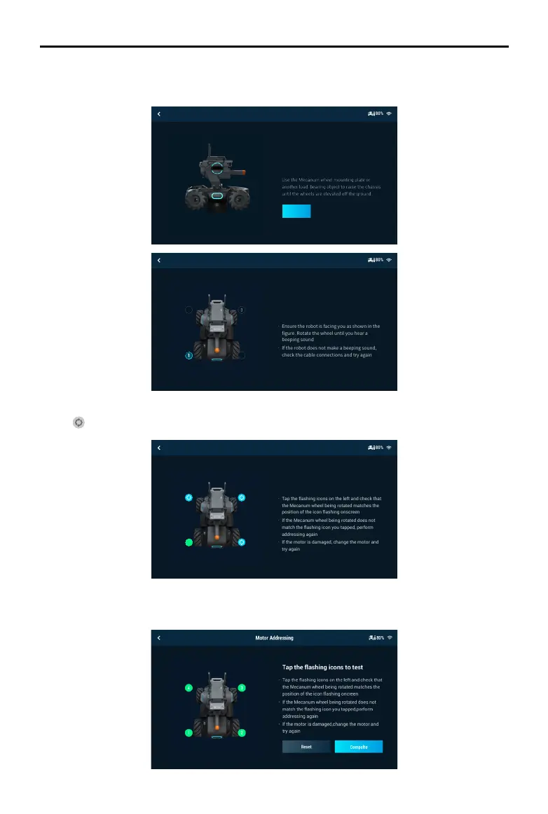 2. Lift the chassis and follow the prompts to rotate the Mecanum wheels in the order shown