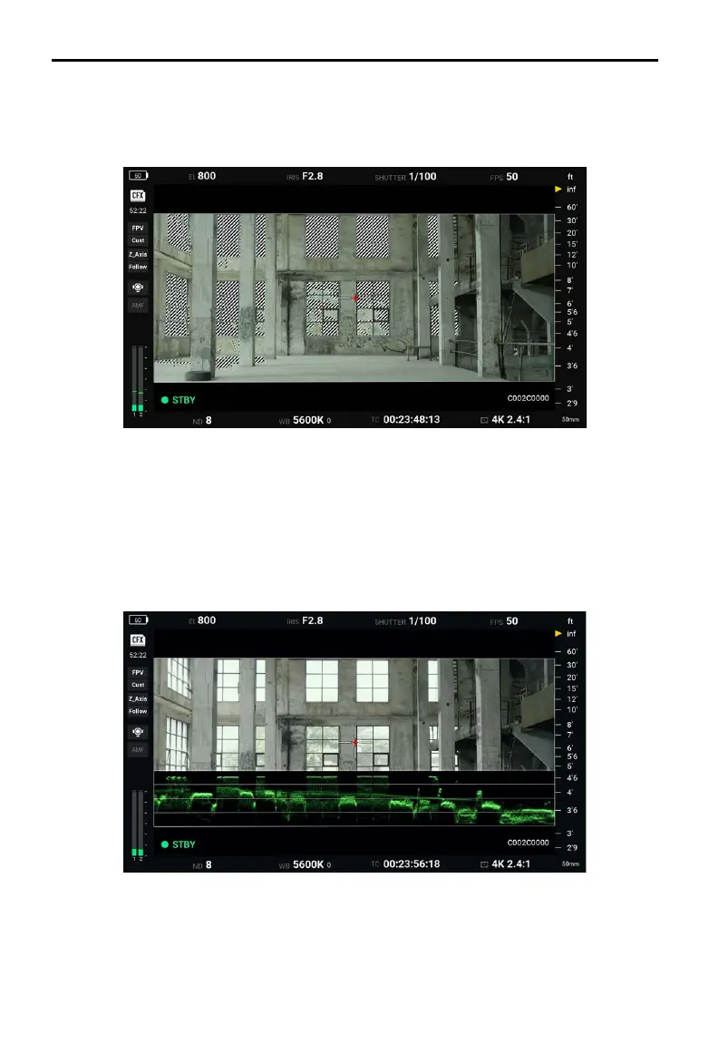 Waveform: Indicates the luminance relation of the image using waveform. The left to right of the