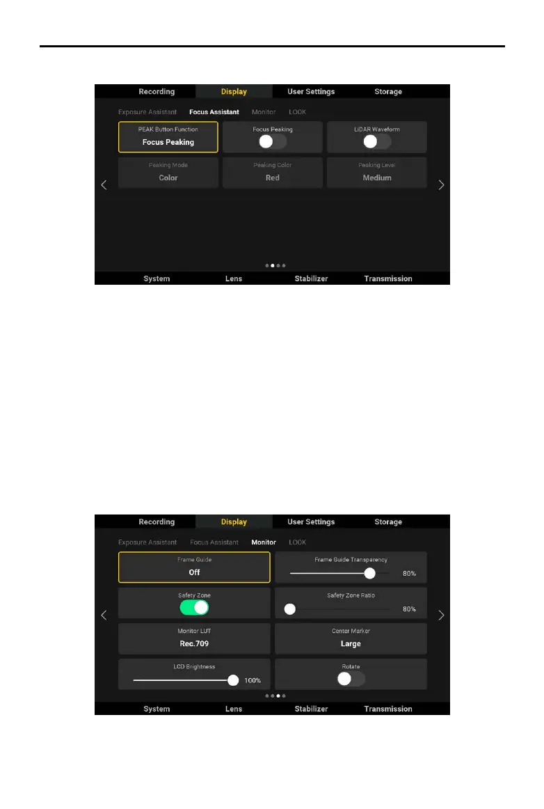 LiDAR Waveform cannot be used when recording in certain resolutions. Peaking Focus, Focus Mag,