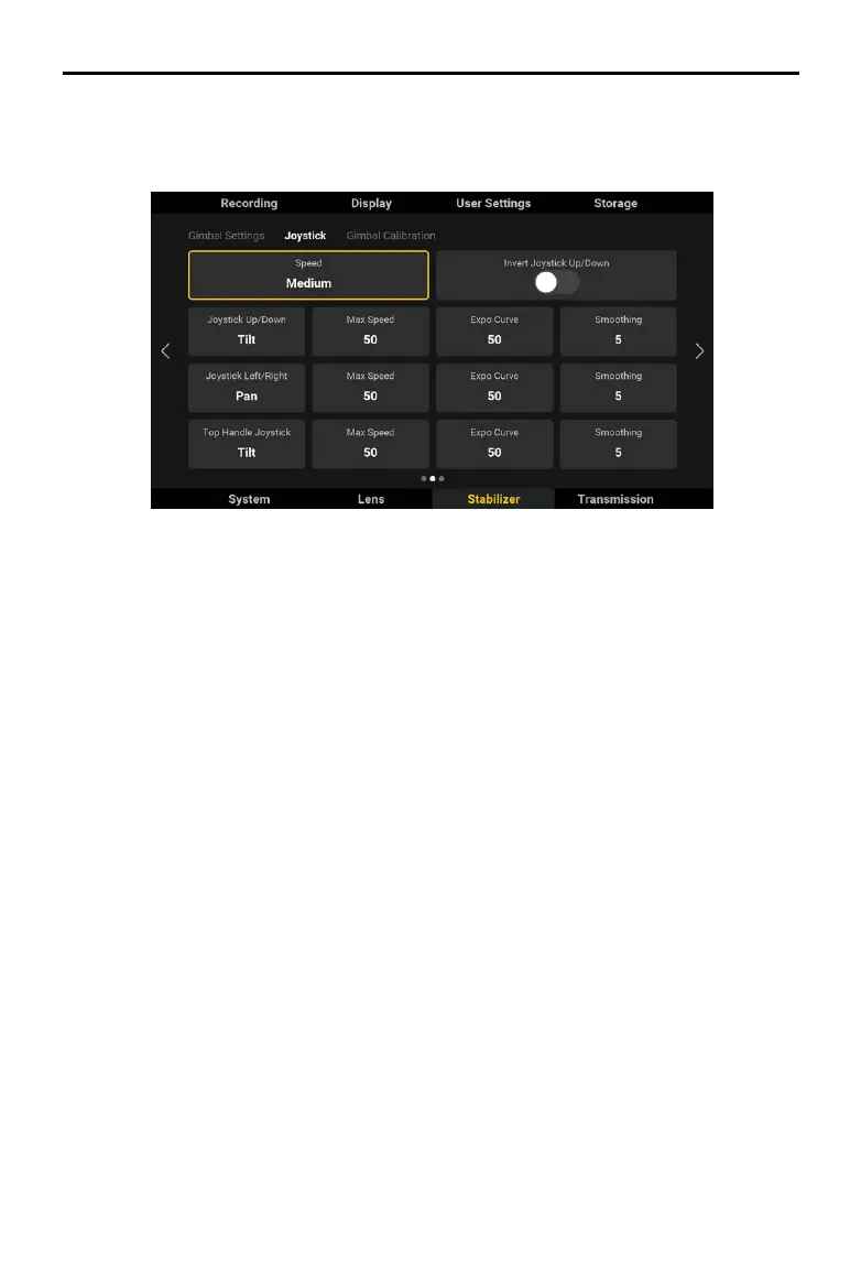 pushed. When the value is set to Medium, the relationship of the rotational speed and the joystick input
