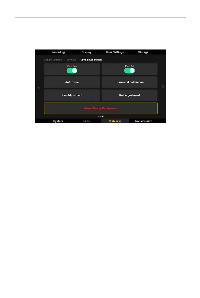 Pan/Tilt Adjustment: Adjust the pan or tilt oset by using pan/tilt adjustment. Tap to enter settings and