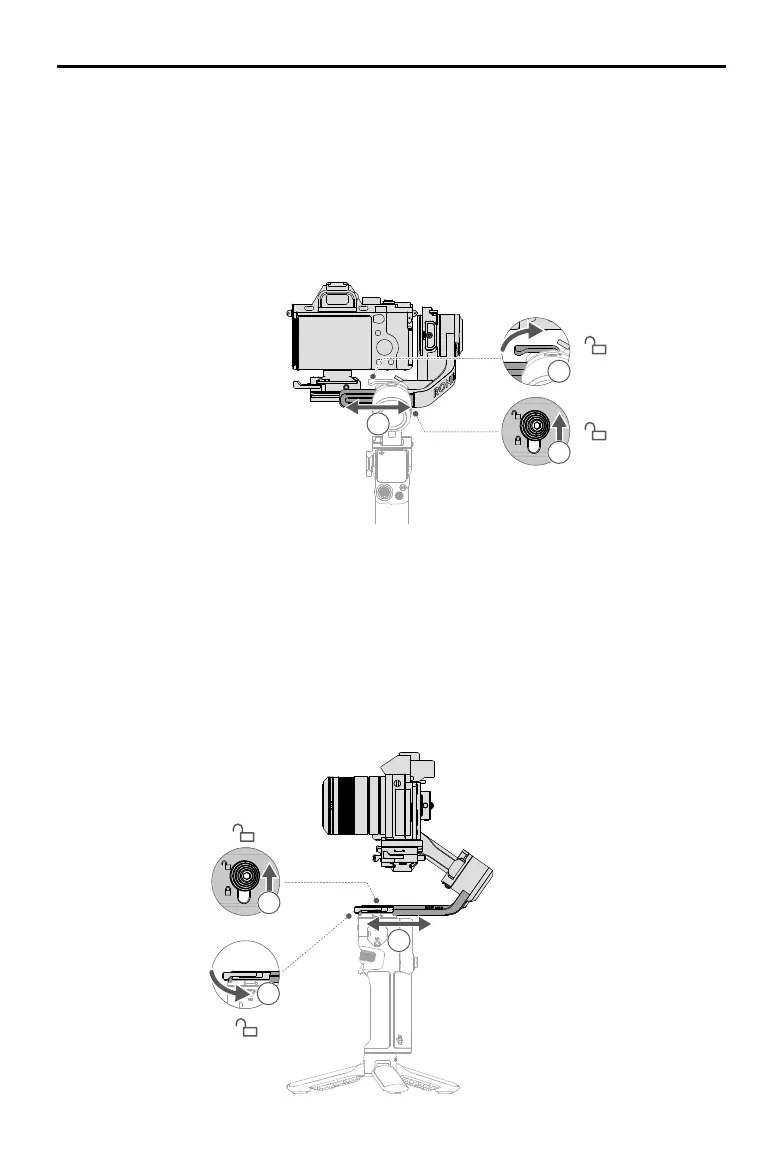 c) Tighten the lever on the pan axis. The pan axis is balanced when the pan arm maintains