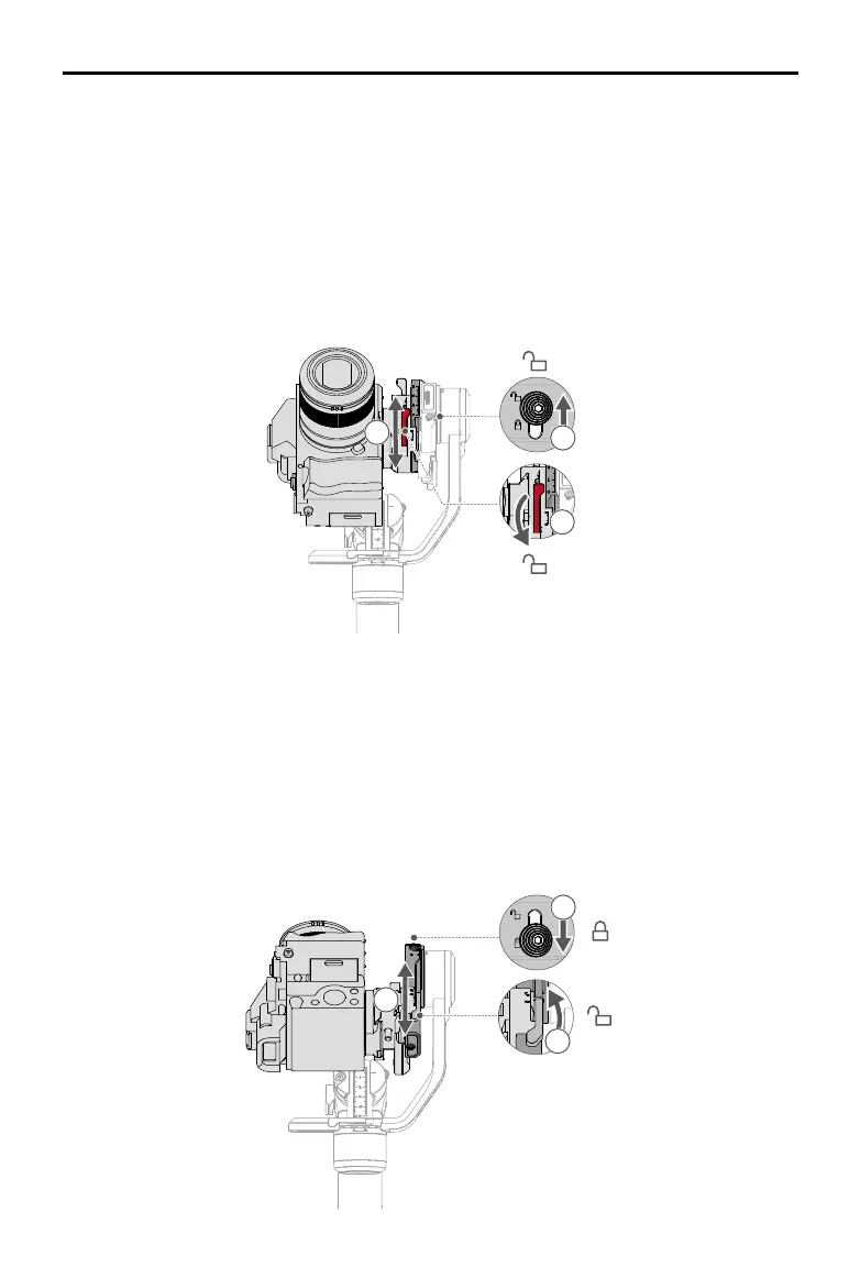 and loosen the red lever on the lower quick-release plate