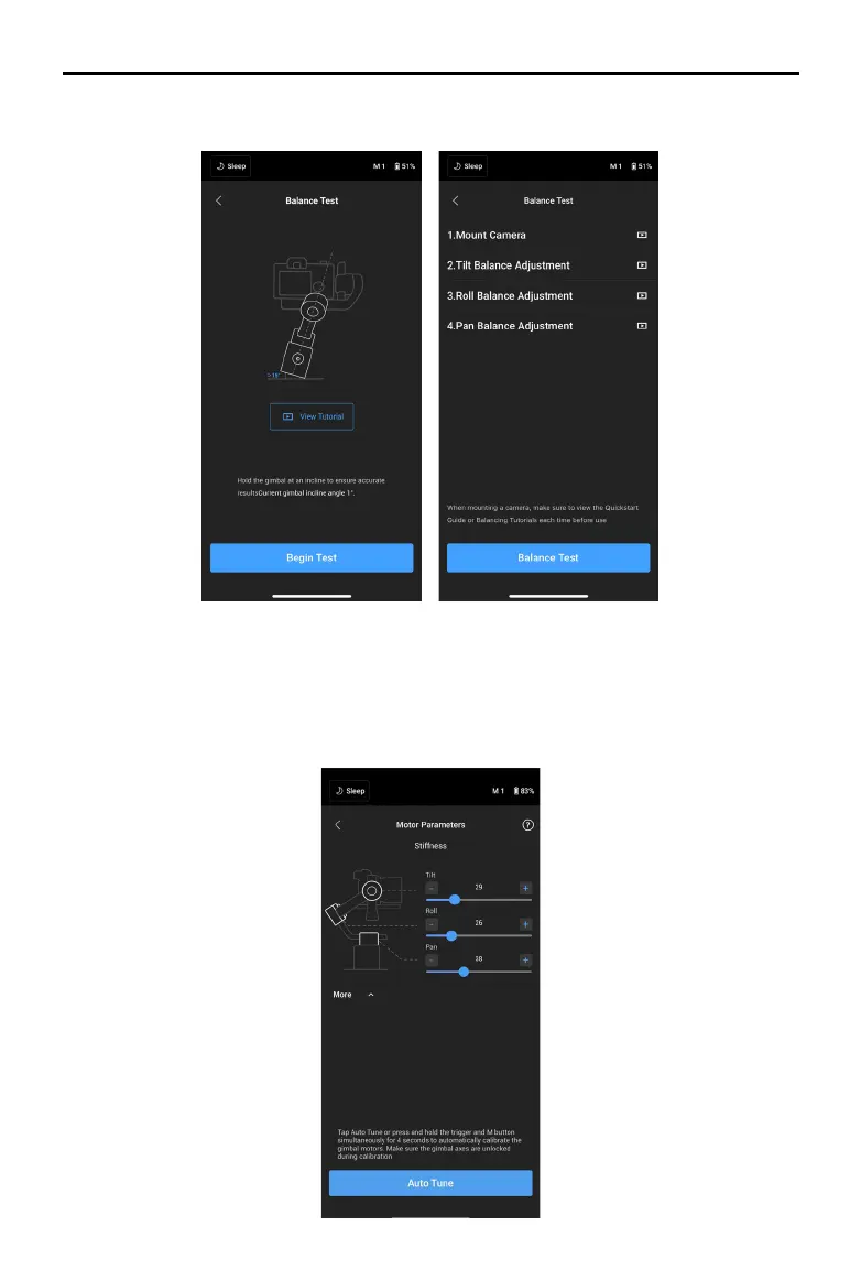 status is not good, view the on-screen tutorial videos on how to balance. Ensure the gimbal is
