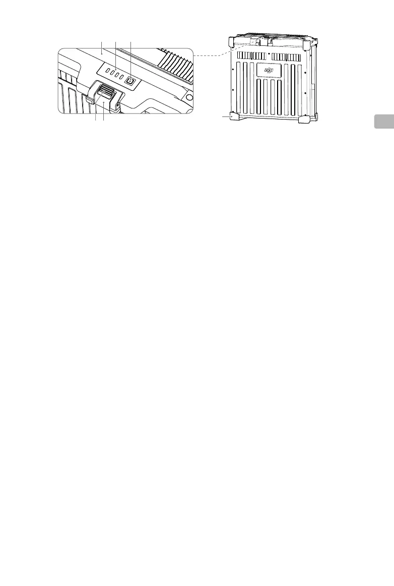 클램프를 사용하여 배터리를 기체에 단단히 부착합니다 . 기체에서 배터리를 분리할 때는 클램프를 누른 상태에