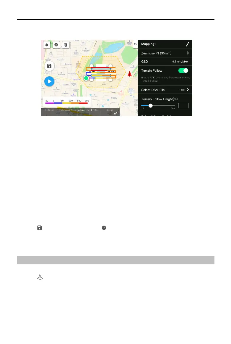 1. Enable Terrain Follow in Mapping mission and select a le from the Select DSM File screen.