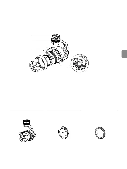 Gimbal und Kamera ×1 Kappe vom Kameragehäuse ×1 Hintere Objektivkappe* ×1
