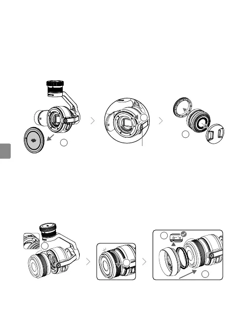 3. Rimuovere il tappo dell'obiettivo e la protezione posteriore.
