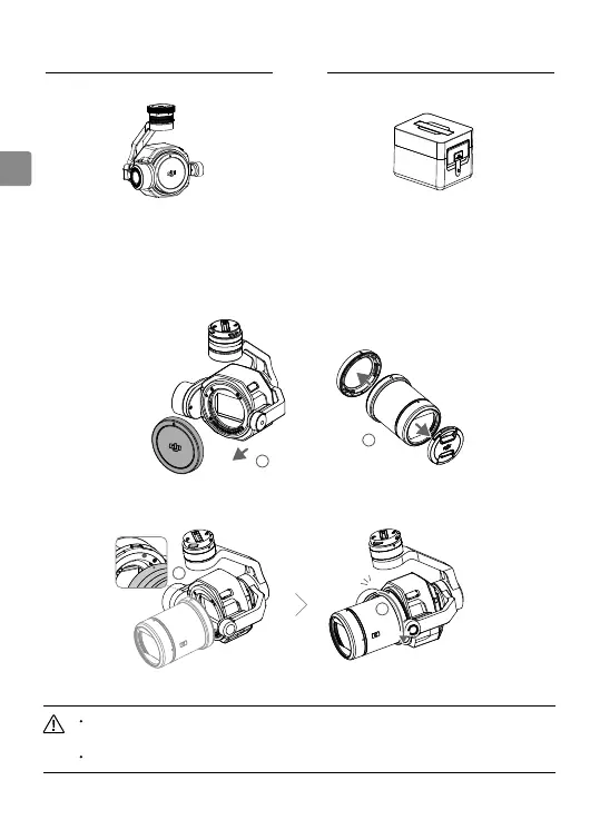 安裝過程中請保持雲台相機鏡頭接環朝下,避免灰塵進入傳感器,影響雲台相機性能。若