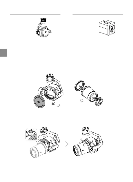카메라 본체에 렌즈를 장착하려면 아래 단계를 따르십시오. 다음 지침은 DJI DL 24mm F/2.8 LS ASPH 렌즈를