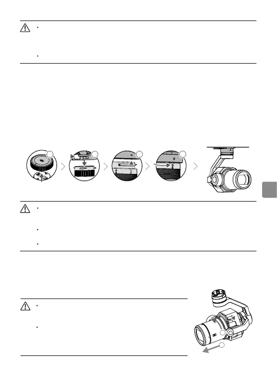 2. Druk op de ontgrendelknop van de gimbal en de camera op de Inspire 2. Draai aan de dop van de