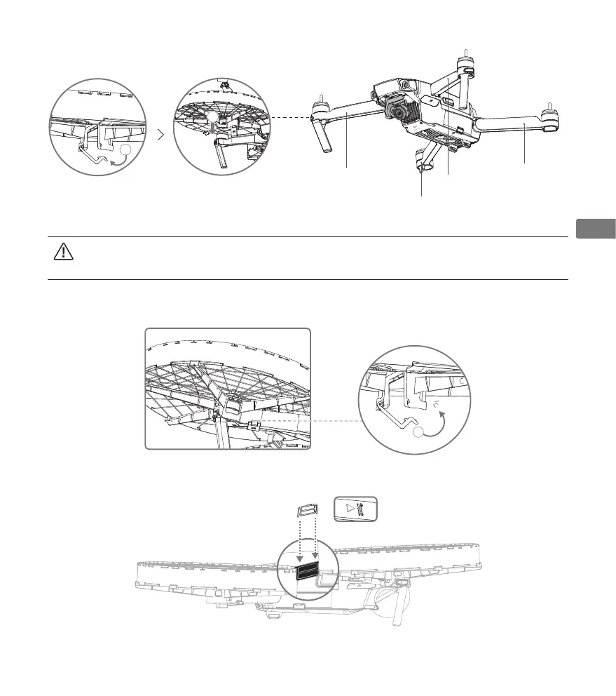 2. Schließen Sie den Verschluss, und achten Sie darauf, dass ein Klicken zu hören ist. Wiederholen Sie die Schritte 1 bis 2 beim Propeller