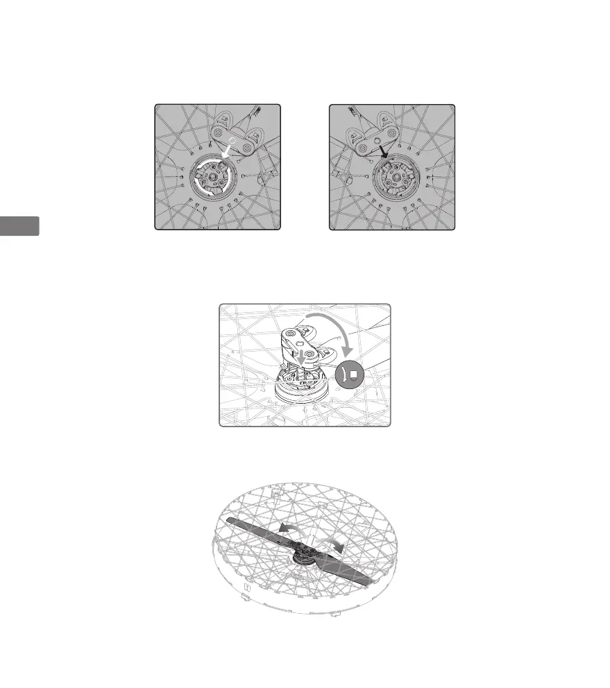 2. Führen Sie den Propeller durch den Schlitz oben auf dem Propellerkäfig ein, und drücken Sie den Propeller nach unten auf den
