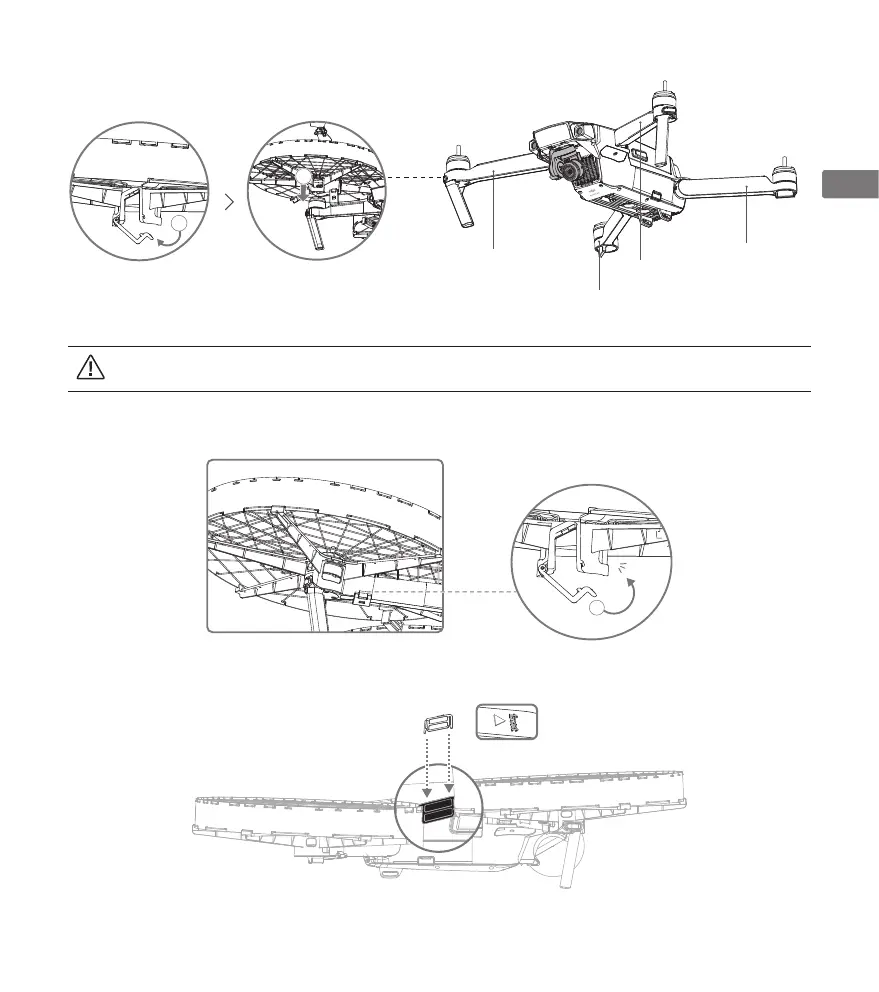 2. Snap the lock shut. When you hear the click, it is tightly secured. Repeat steps 1 to 2 for the propeller cage marked 4 on the right rear