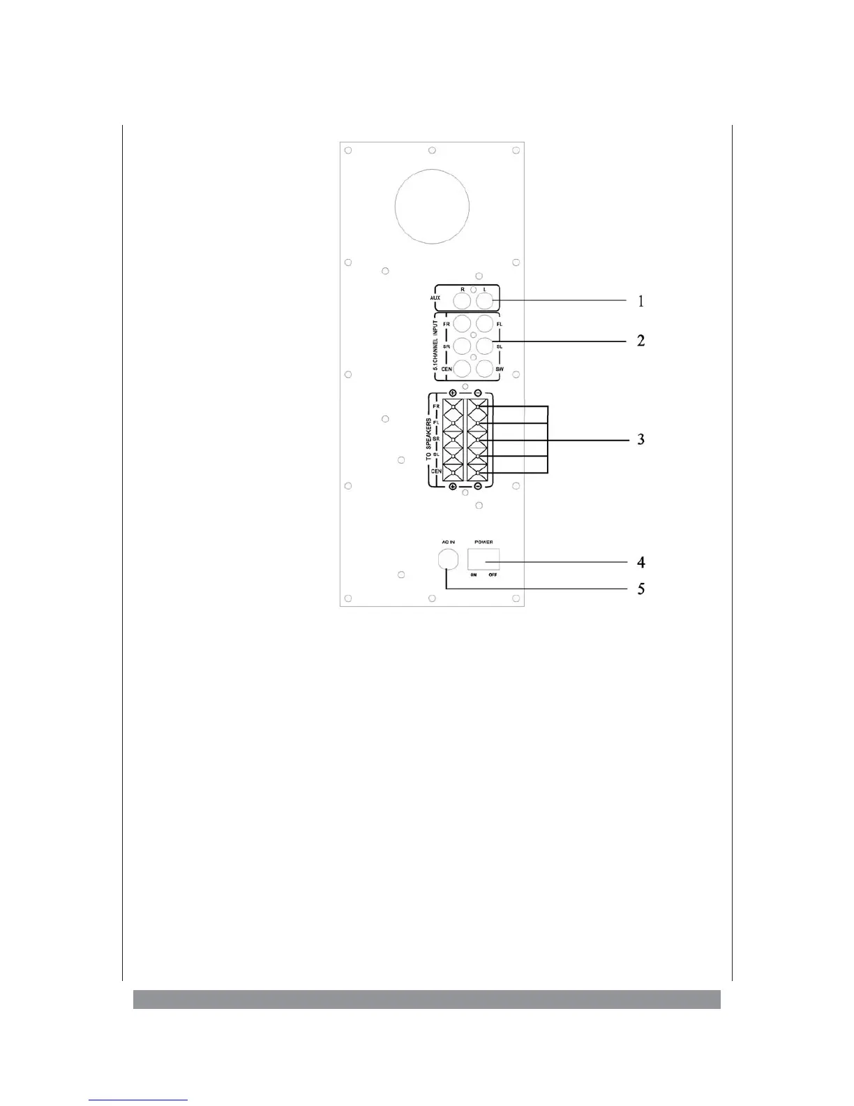 Surround Right - Connect the right surround speaker to the +/- terminals.