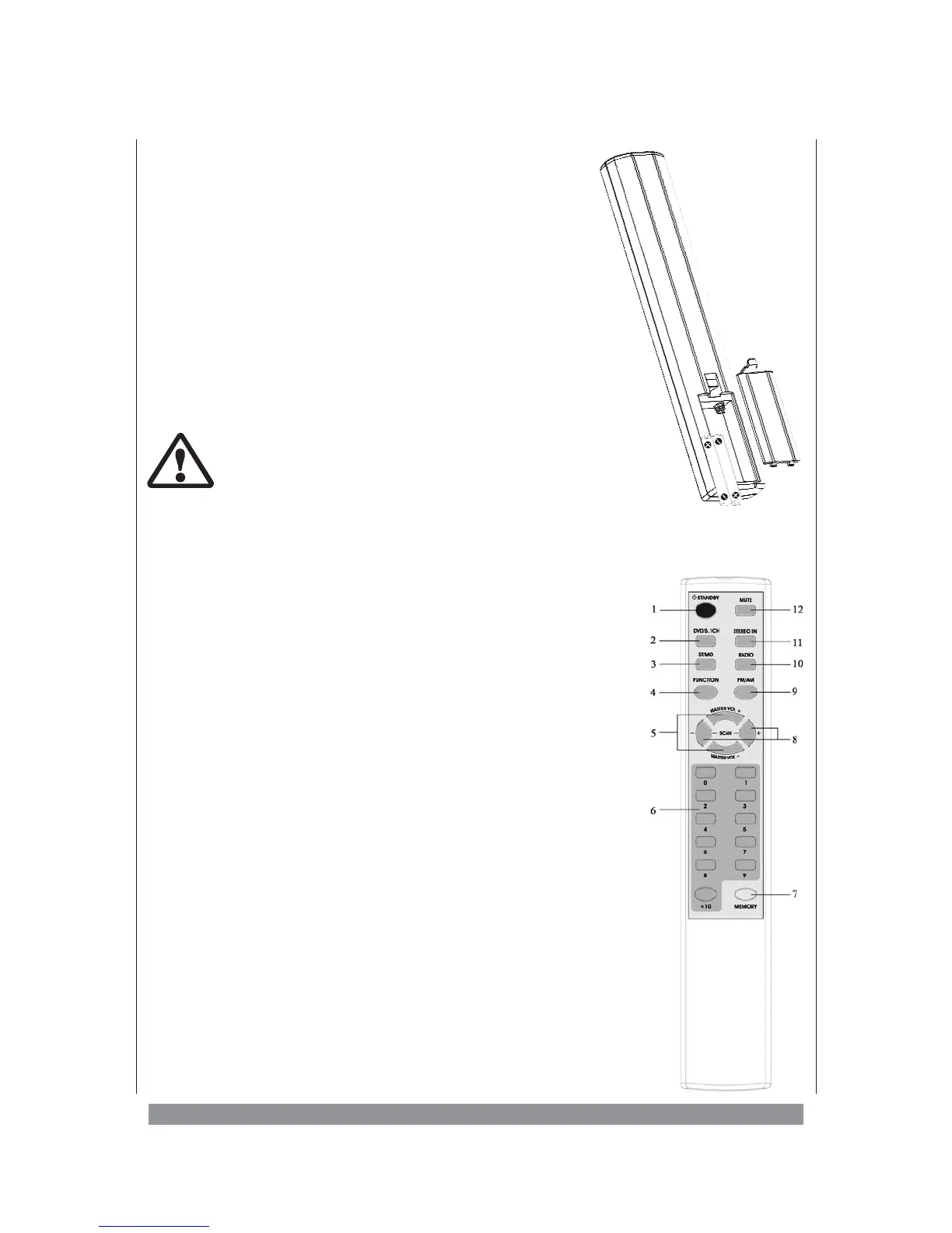 Take out the remote control handset from the package. Open