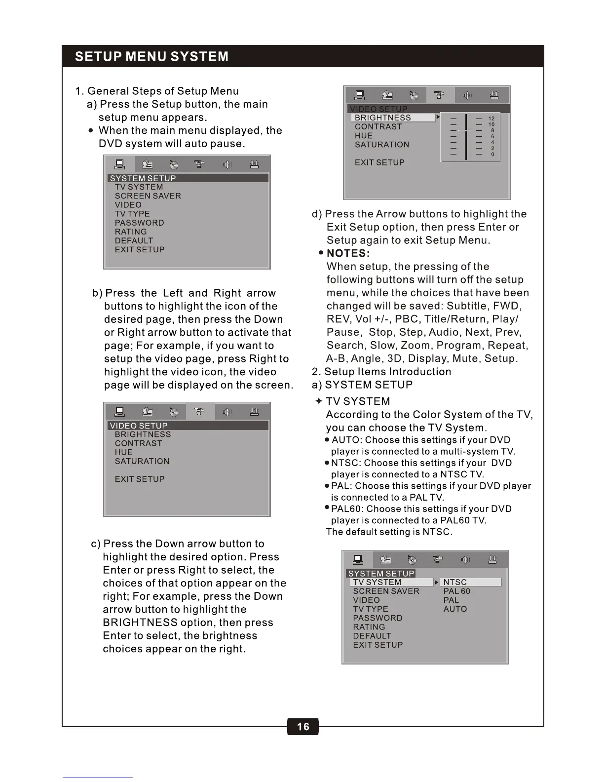 DK Digital DVD-228 - Setup Menu System; General Setup Menu Navigation