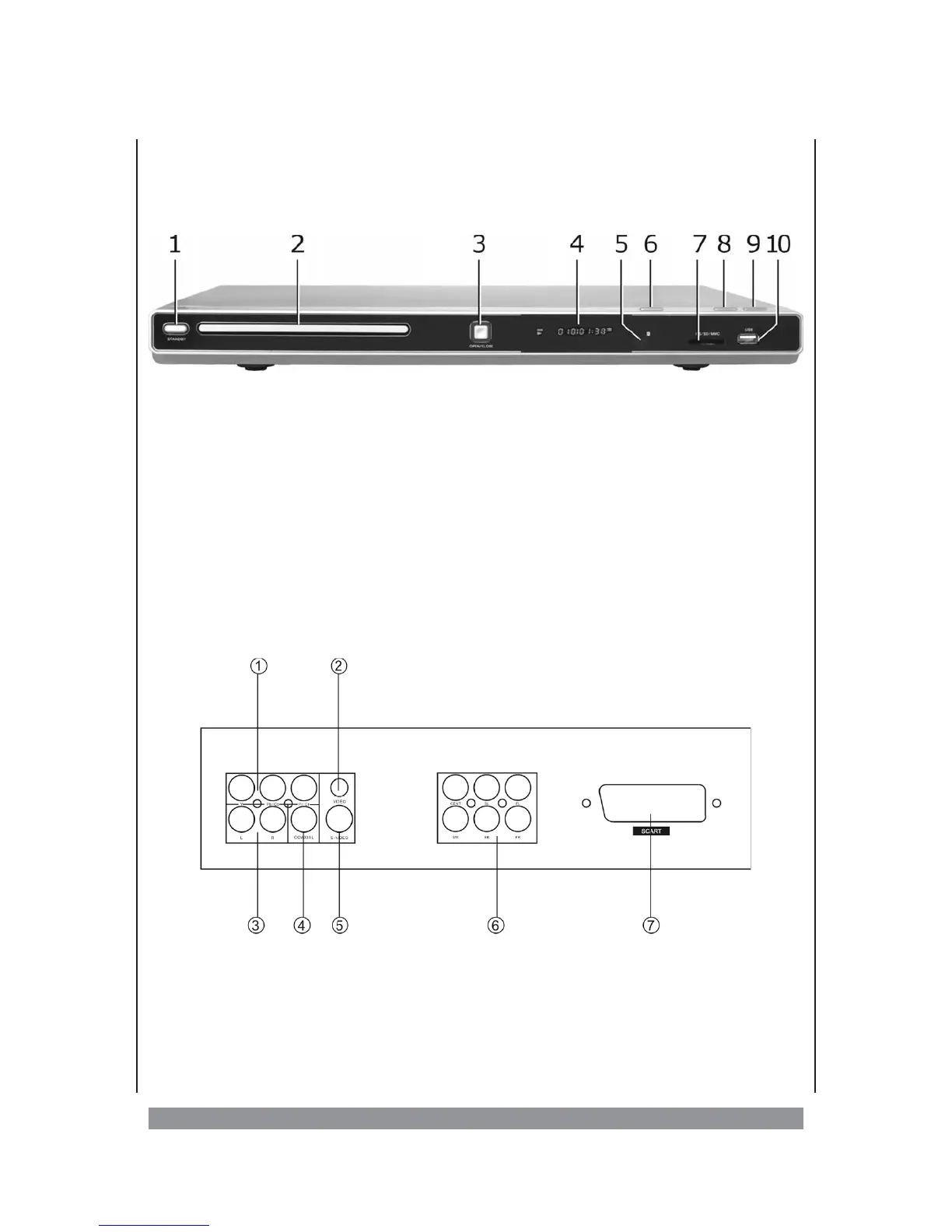 6. 5.1 channel audio output (front L / R, centre, rear L / R, subwoofer)