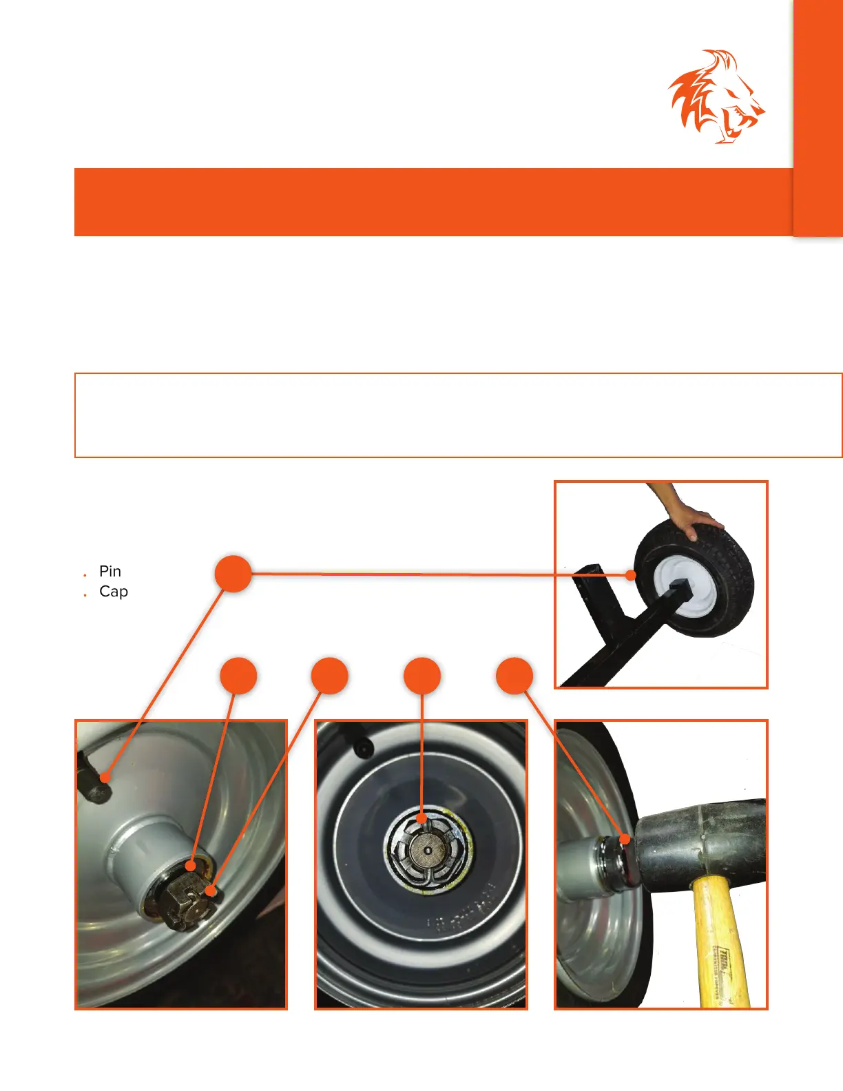 2. Install the wheel with stem facing out, then large washer, then nut. Turn by hand to tighten,