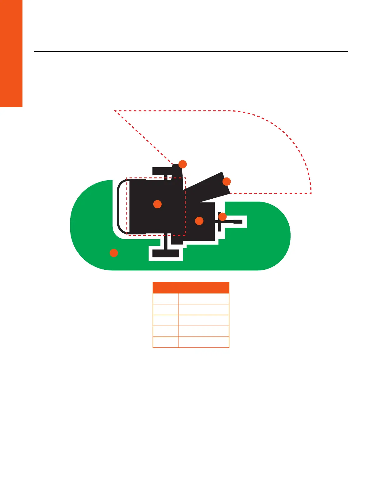 Operate the equipment from within the green operator zone as shown in the diagram below,