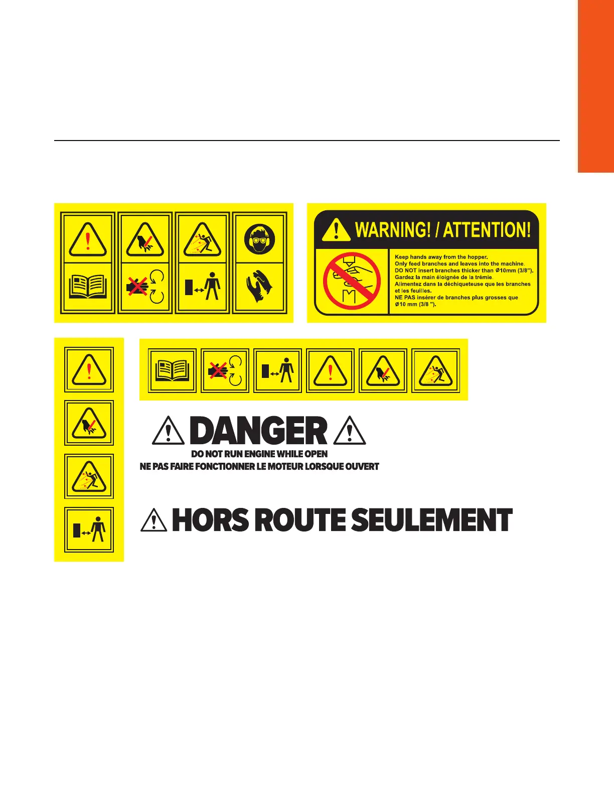 Assurez-vous que tous les autocollants d’avertissement de sécurité sont fixés et lisibles.