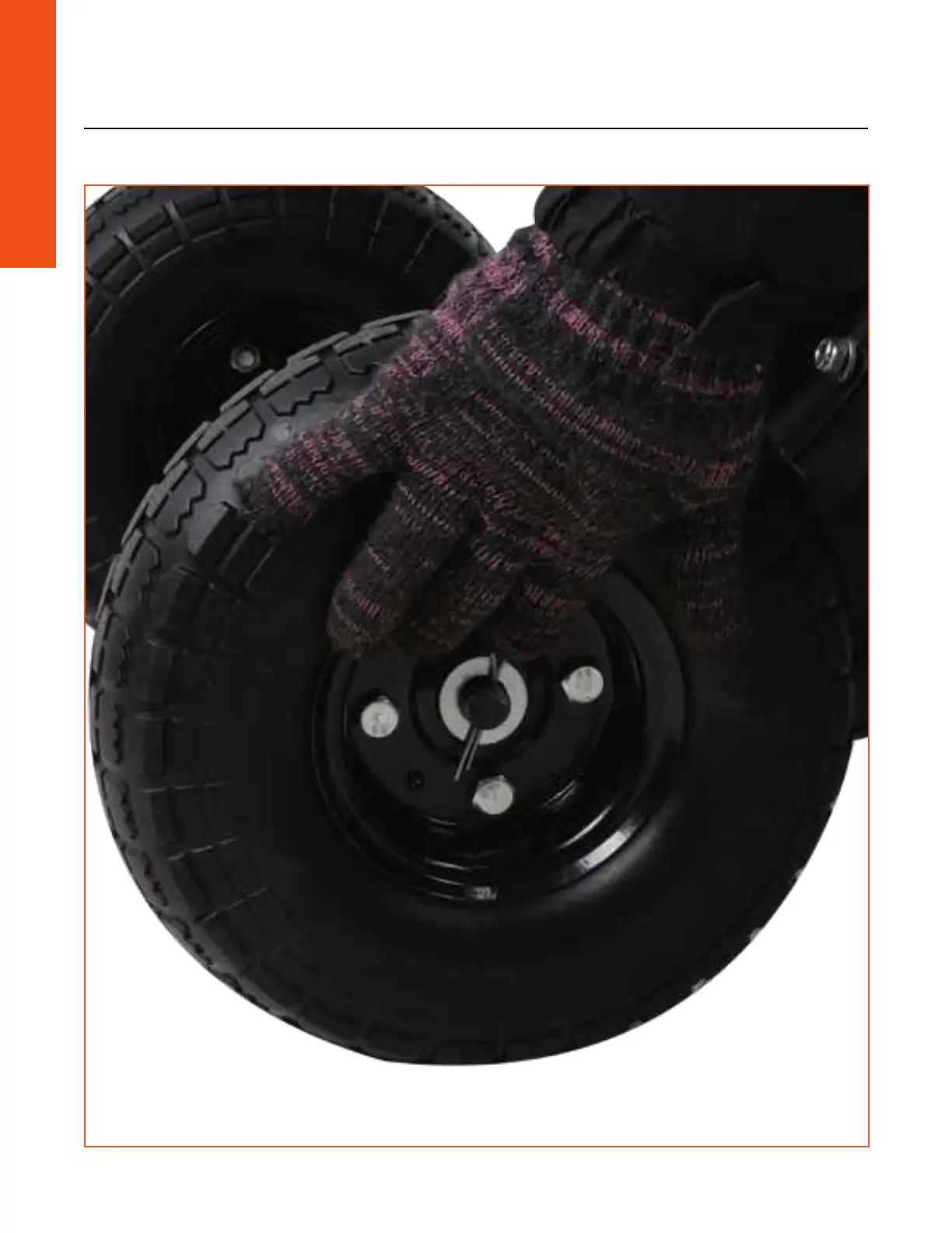 Installez les roues. Utilisez des goupilles de verrouillage dans l’essieu.