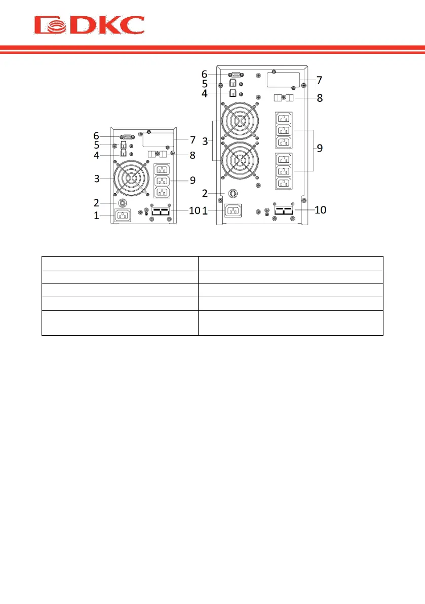 Таблица 5. Описание задней панели ИБП