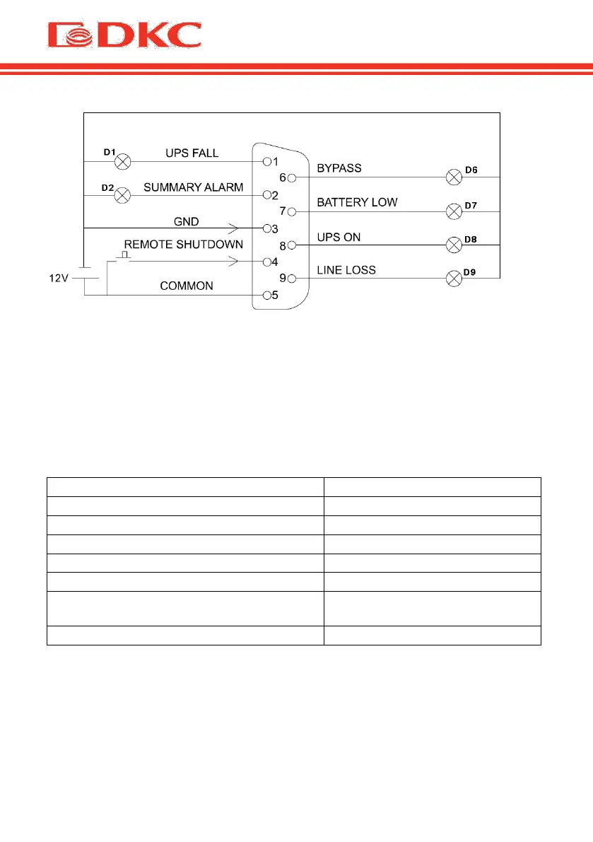 Table 7. Display of UPS status using the AS400 DB-9 connector