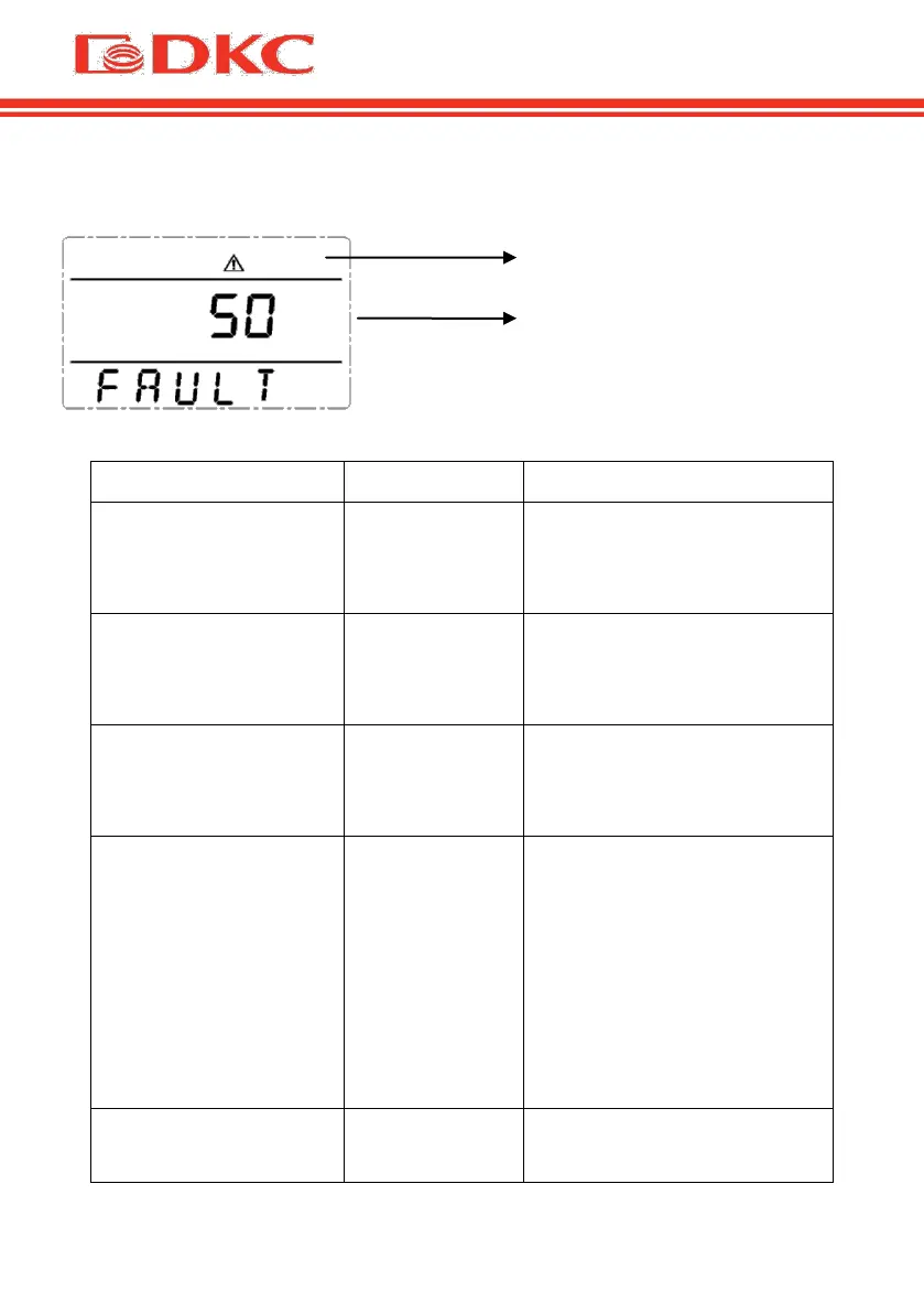 In fault mode, the UPS screen displays an error code: