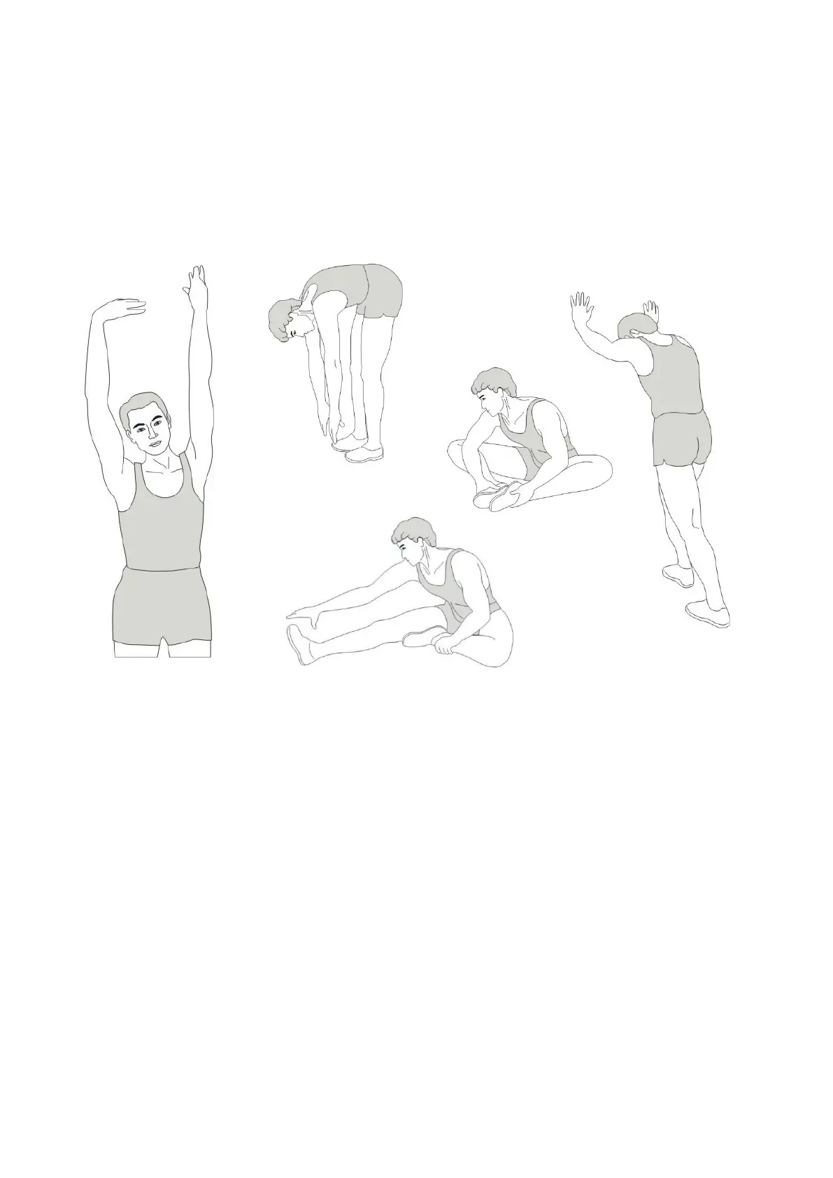 DO NOT BOUNCE OR OVER-STRETCH. Take your time on each stretch. Gradually take