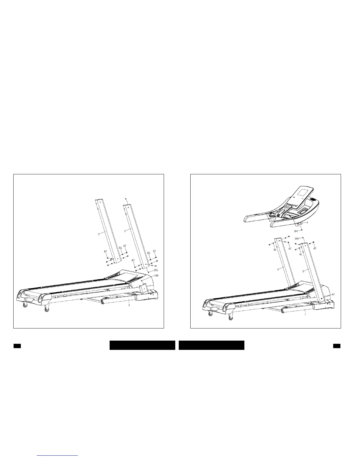 2. Attach the console frame (4) to the upright tube (3) using the Hex socket screws (67) and