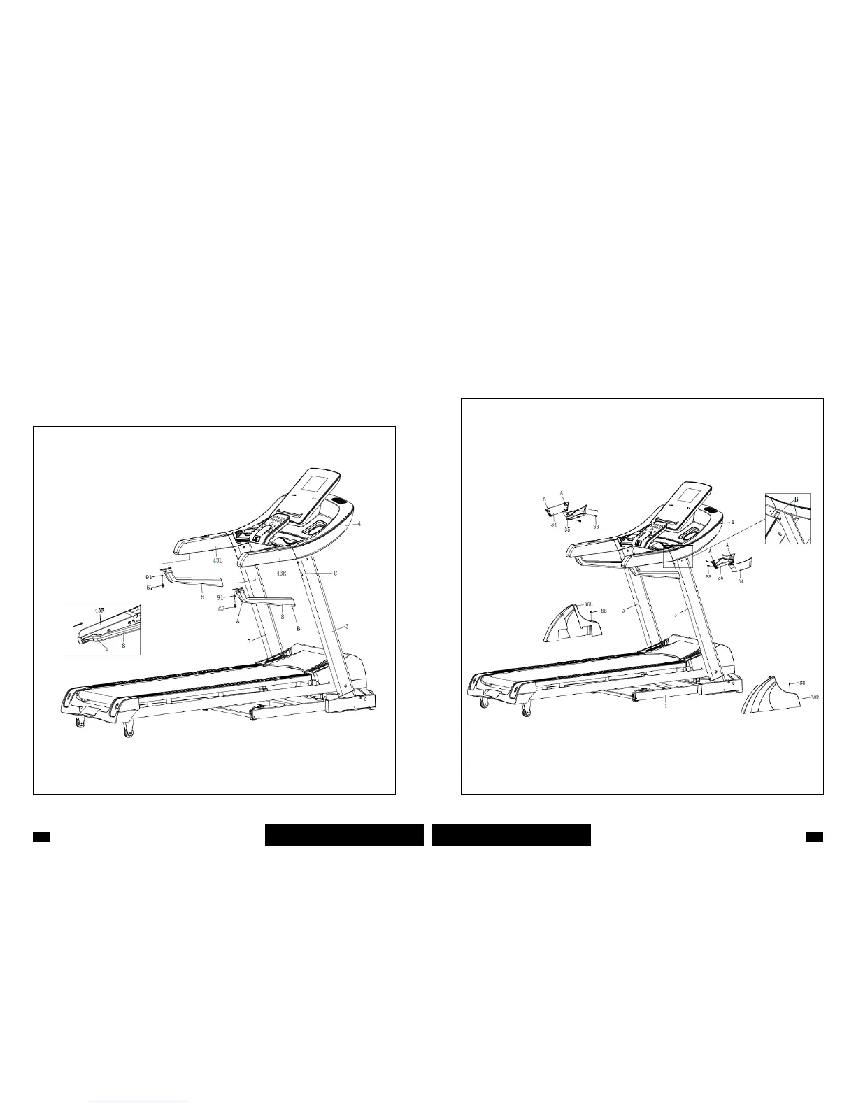 2. Insert the A side of the Outside upright cover (34) and Inside upright cover (35) to the B side
