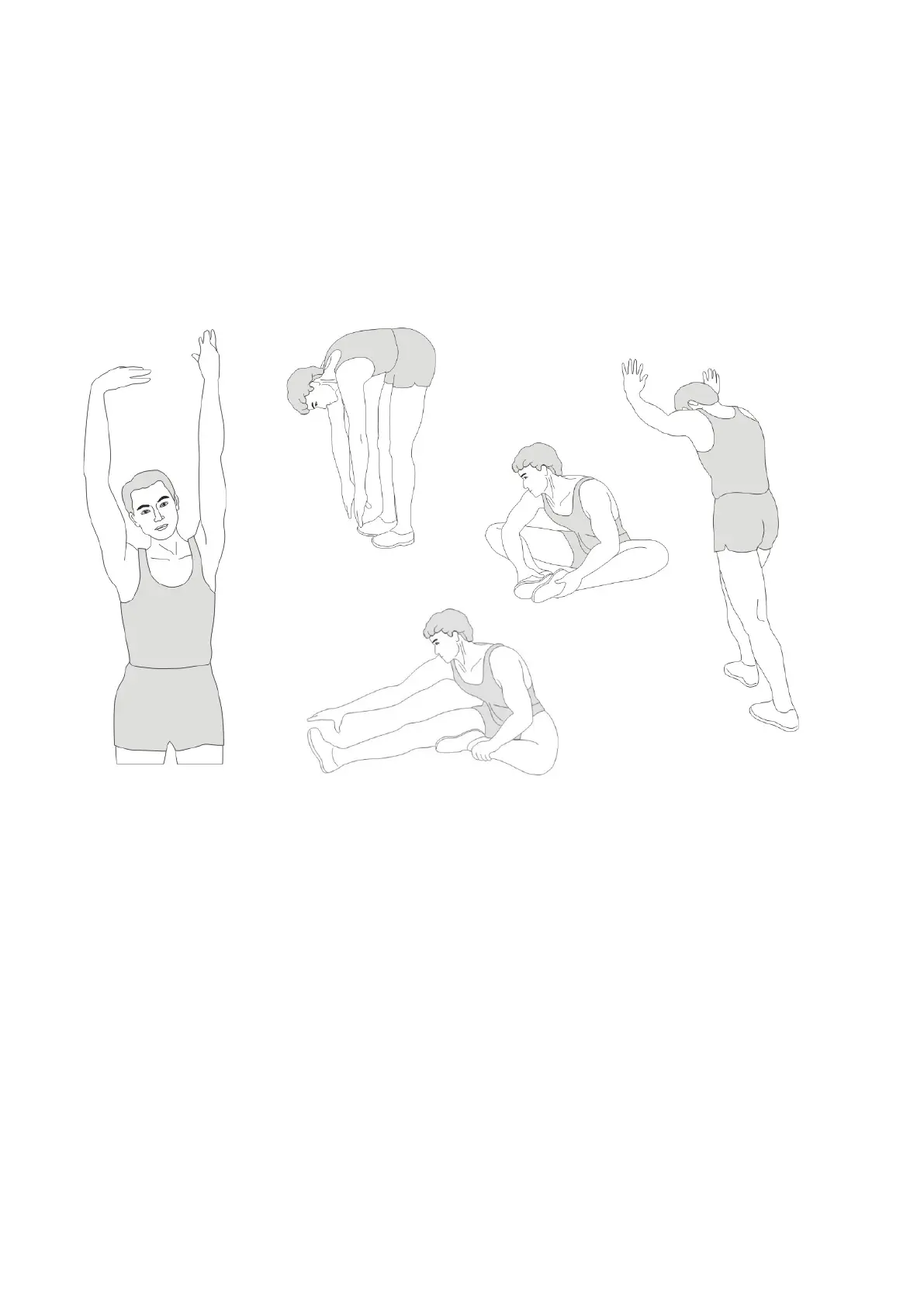 DO NOT BOUNCE OR OVER-STRETCH. Take your time on each stretch. Gradually take