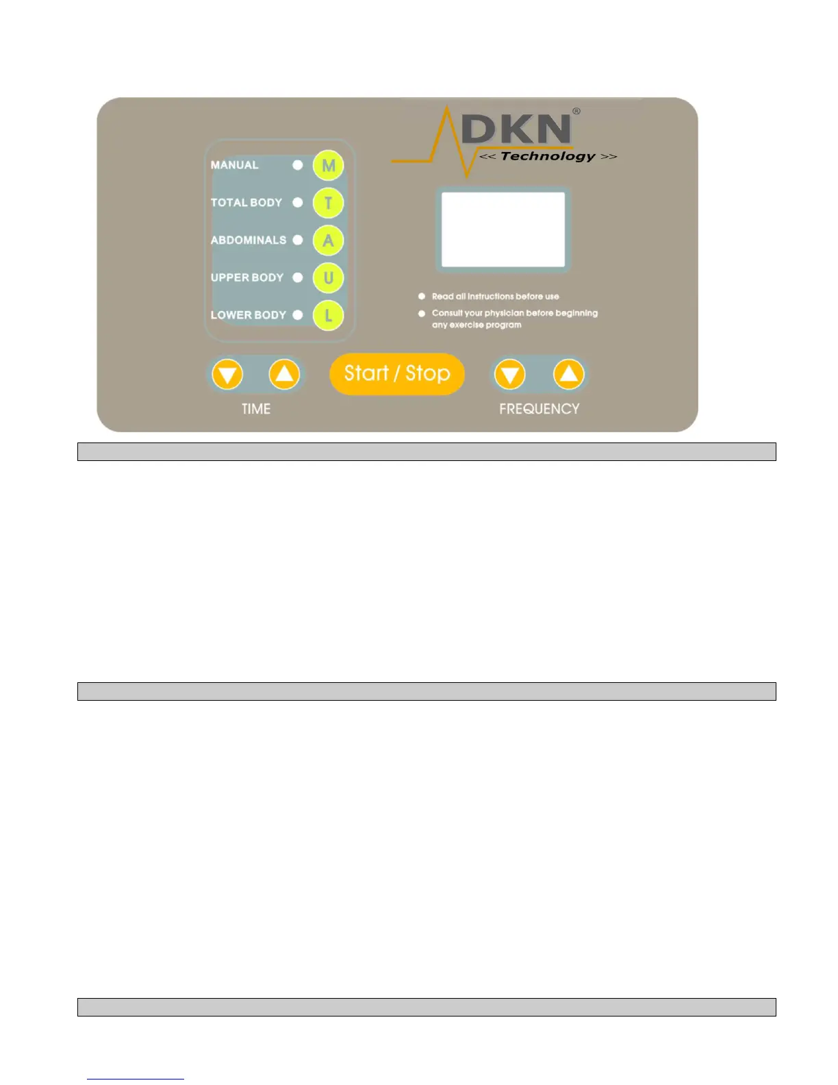 3. Program mode: Preset modes: Total body, abdominal, Upper body, lower body