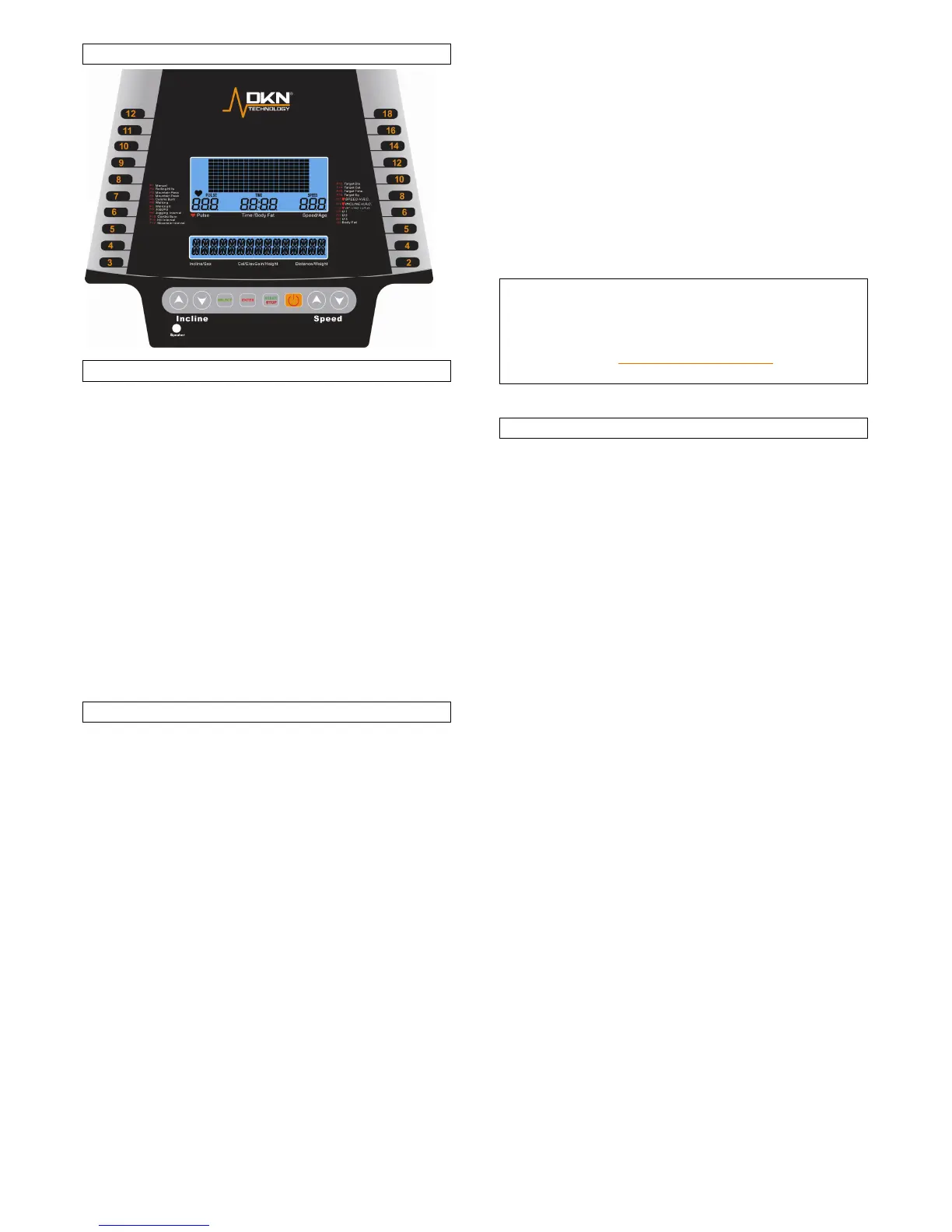 Incline +/- : permet l’ajustement de l’inclinaison ou