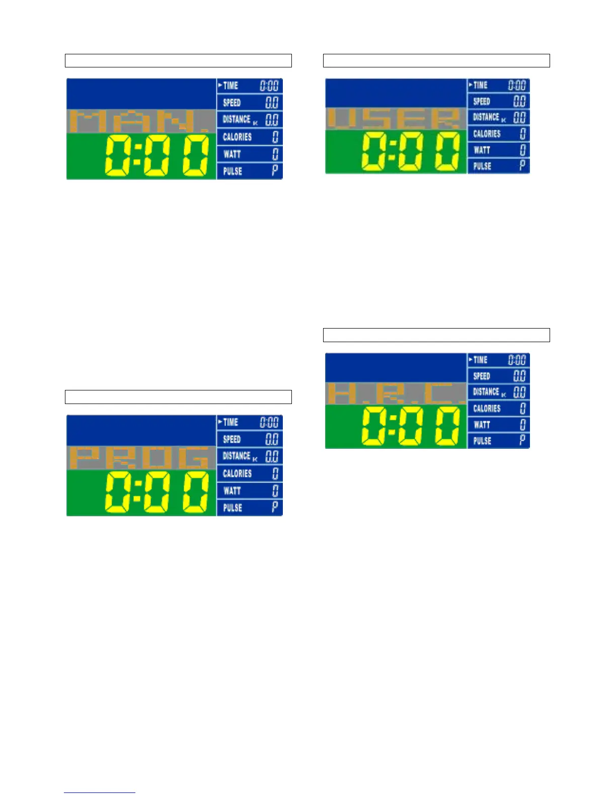 programmez “TIME, DISTANCE, CALORIES et