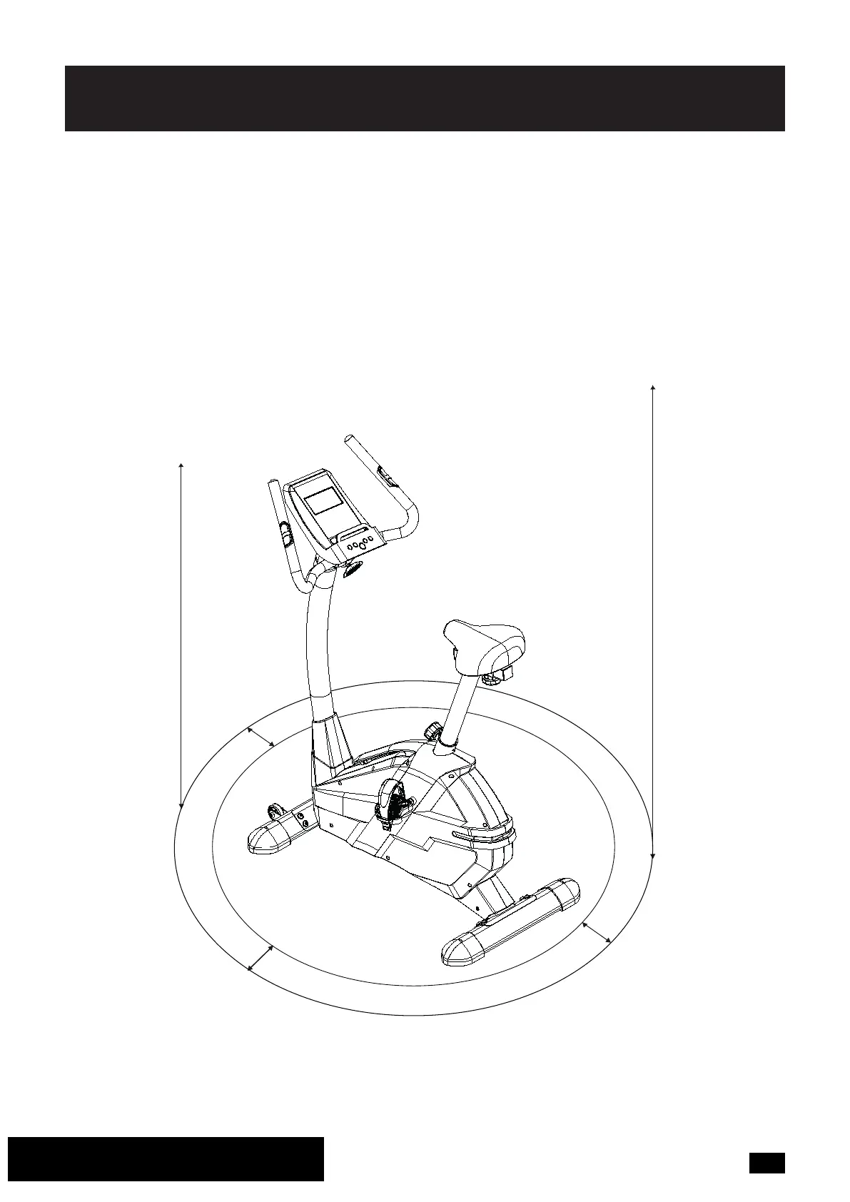 A minimum free space of 1m in the front and rear of the bike and 0.6m on each side is