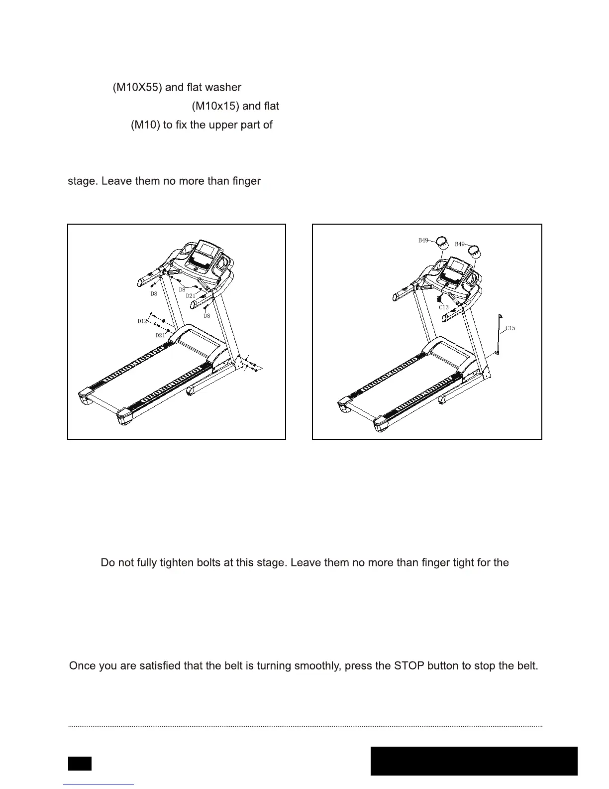 Tighten all the bolts to complete the assembly. Then check that the running belt is running