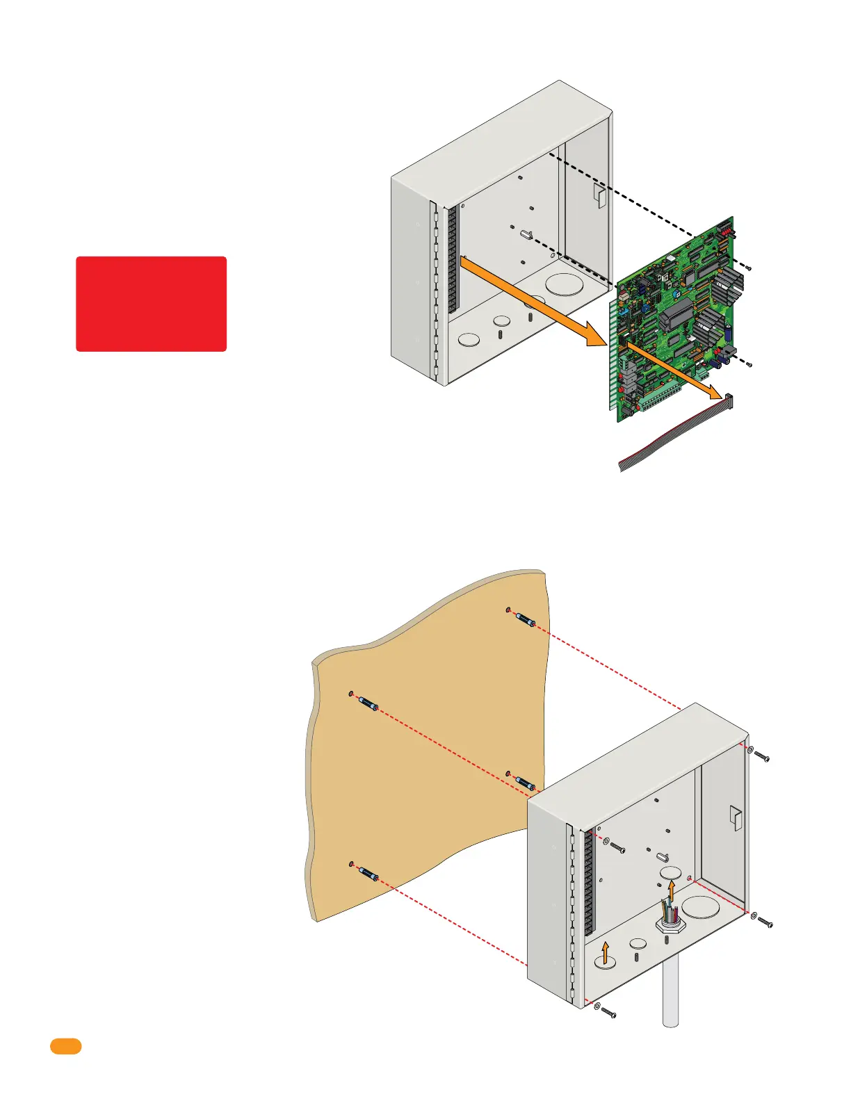 1. Mount the enclosure using the mounting holes provided in the corners (see section 1.2