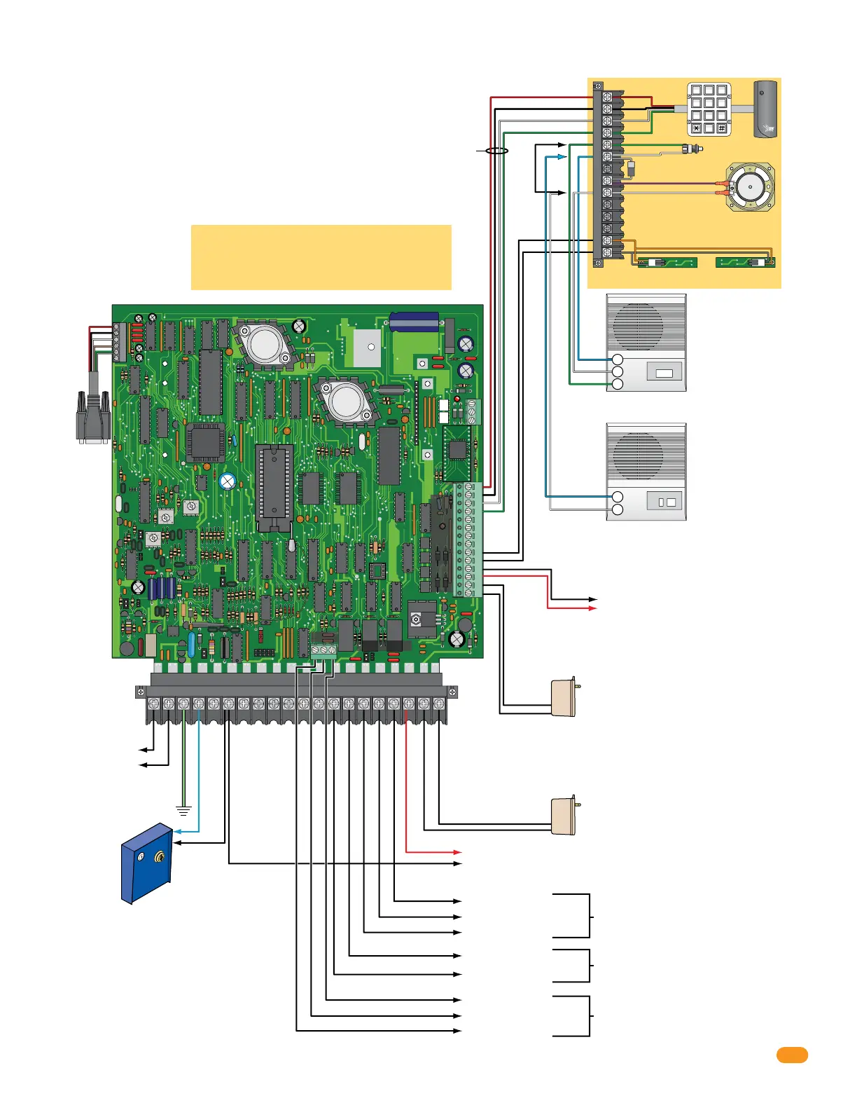 Relays activate a door lock