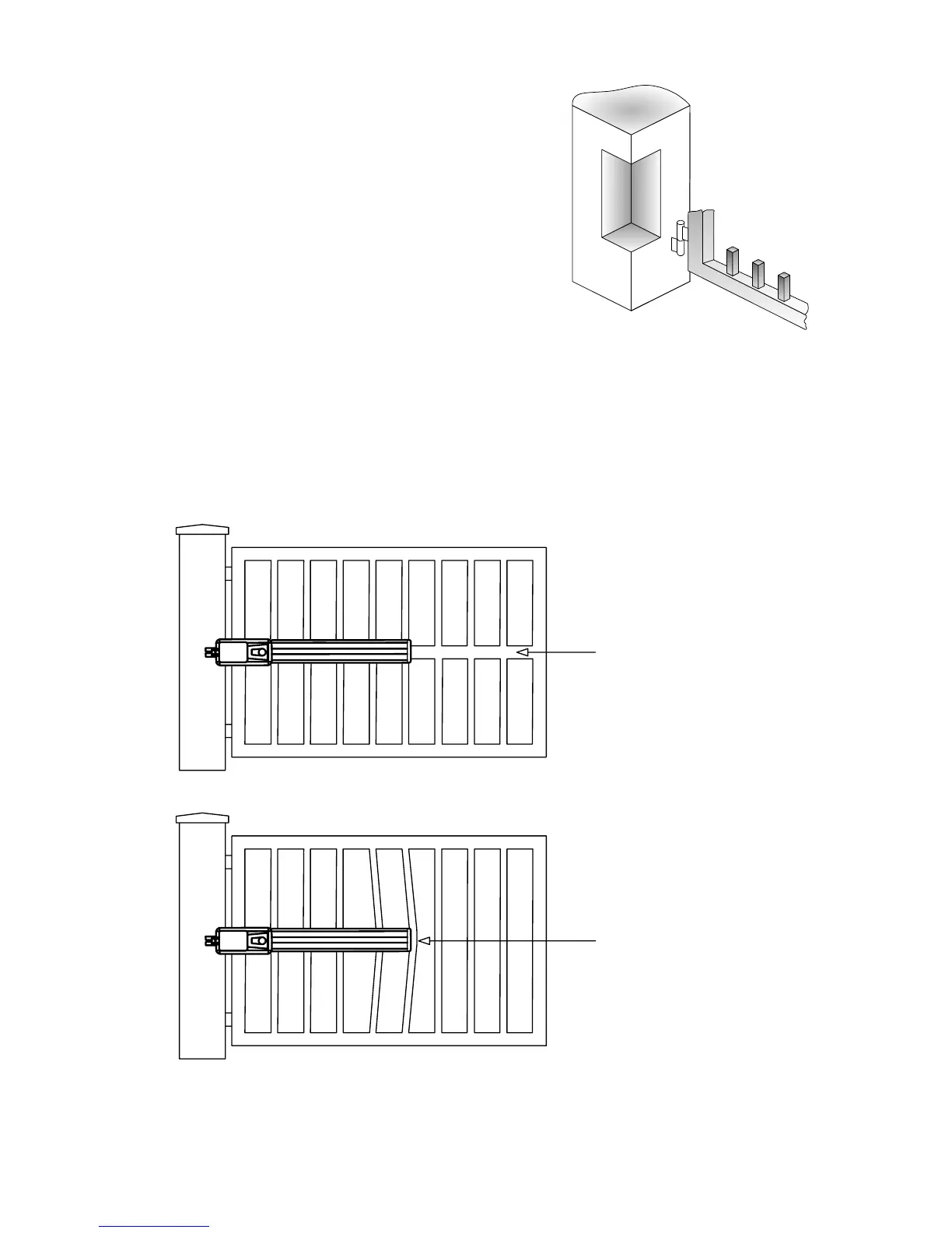• If the actuator is to be mounted in the center of the gate, a support plate must be added that
