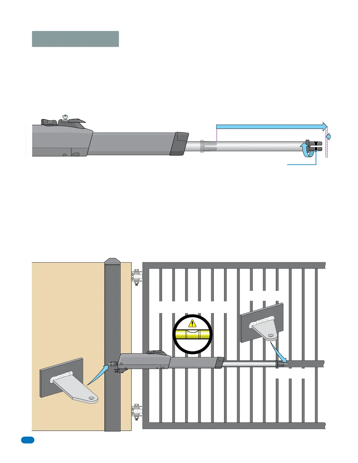 It is very important that the powered shaft is not fully extended when installed on the gate (bottoming out). This will damage the