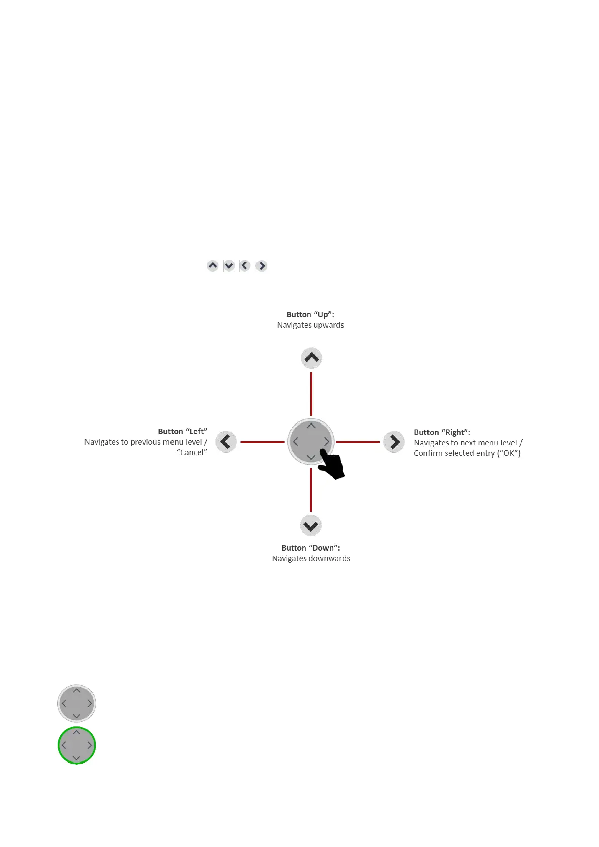 The status indicator is the LED ring around the navigation button. Additionally, a buzzer signals the status of the