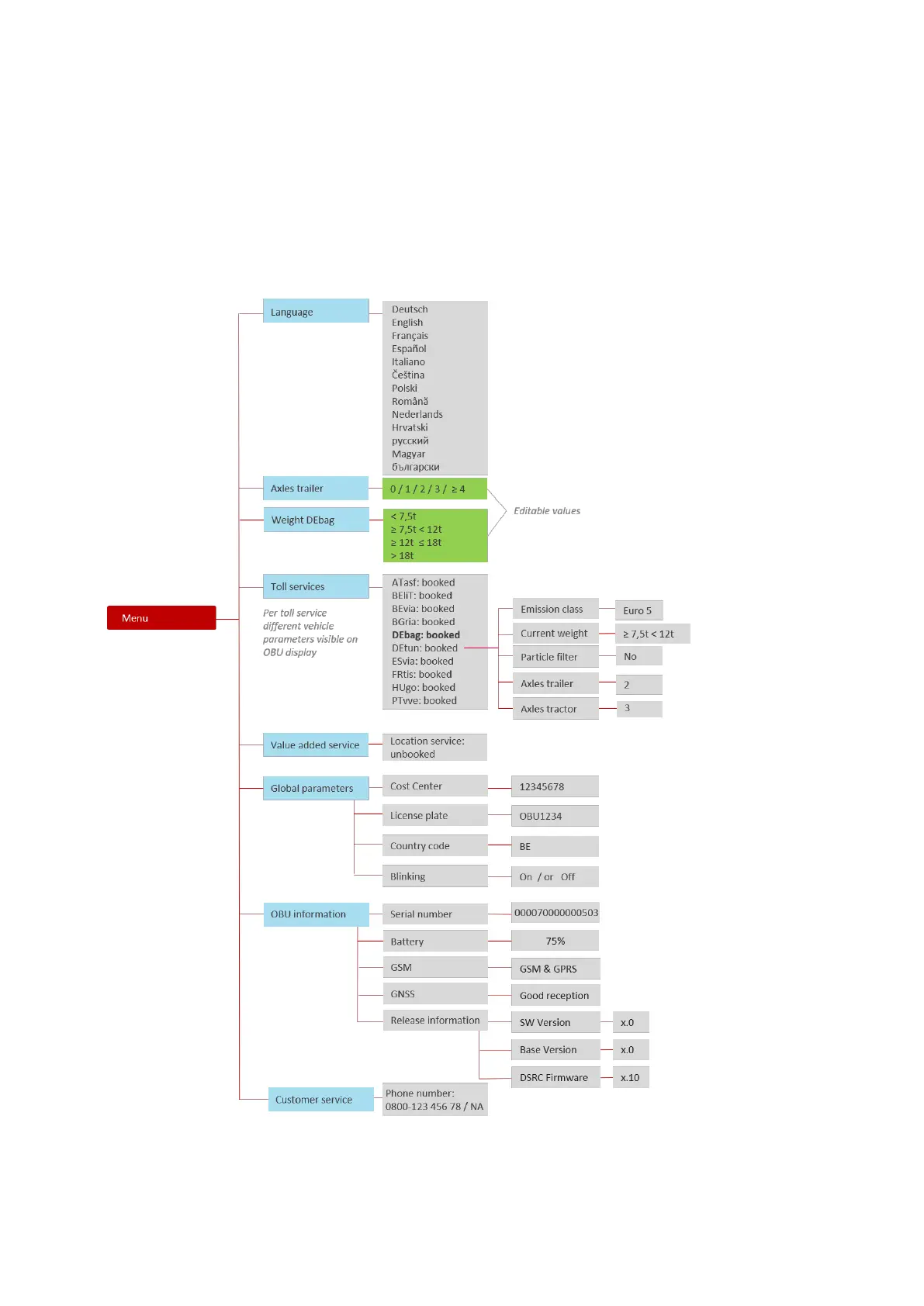 DKV OBU - 5 Obu Menu and Toll Domain Specifics; OBU Menu Structure; Figure 13: Overview Menu Structure