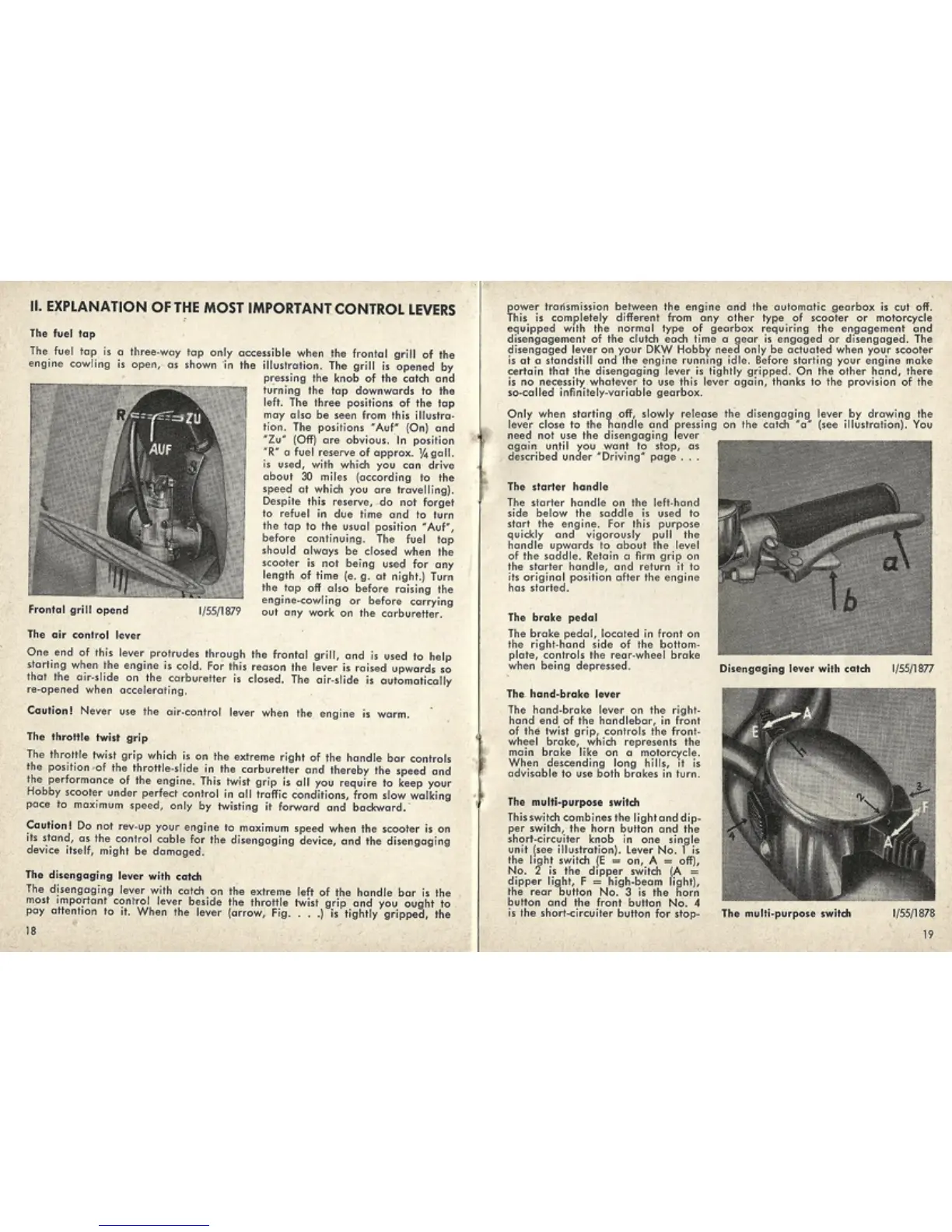 DKW Hobby - Control Lever Explanations; Fuel Tap Details; Air Control Lever Caution; Throttle Grip Control