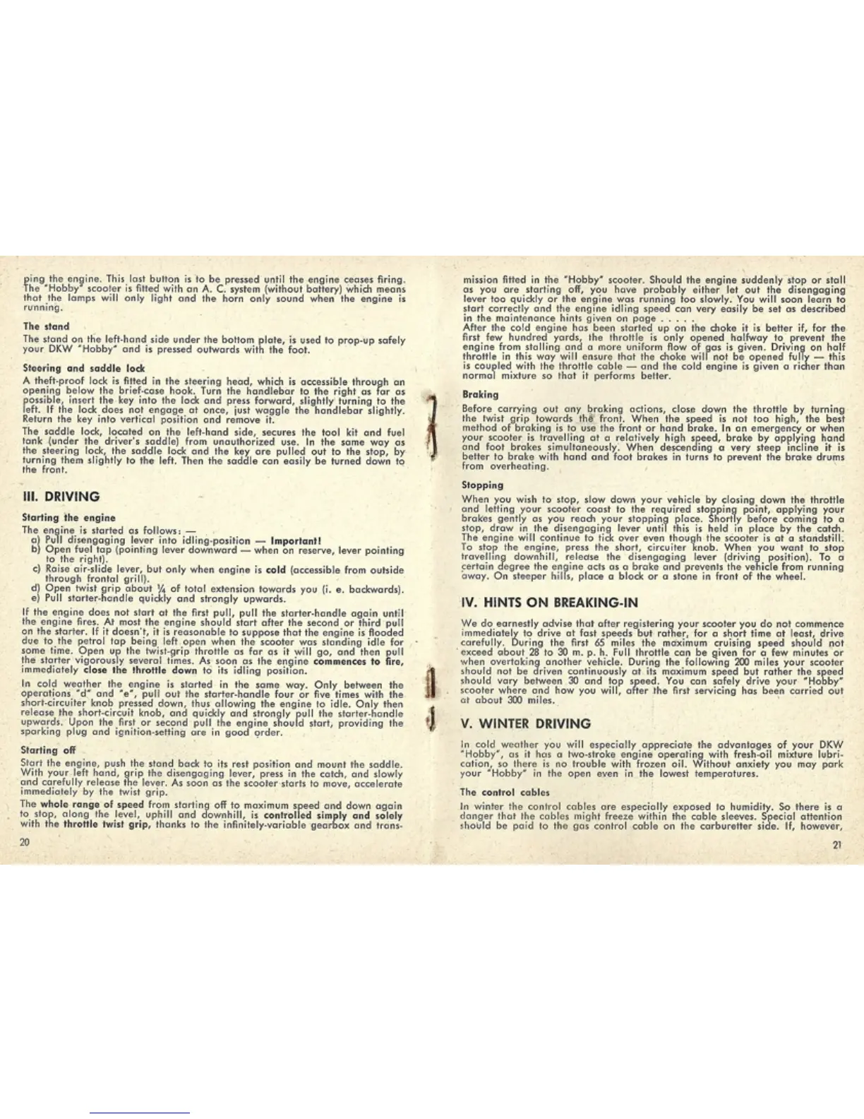DKW Hobby - Driving; Starting the Engine; Starting Off; Braking