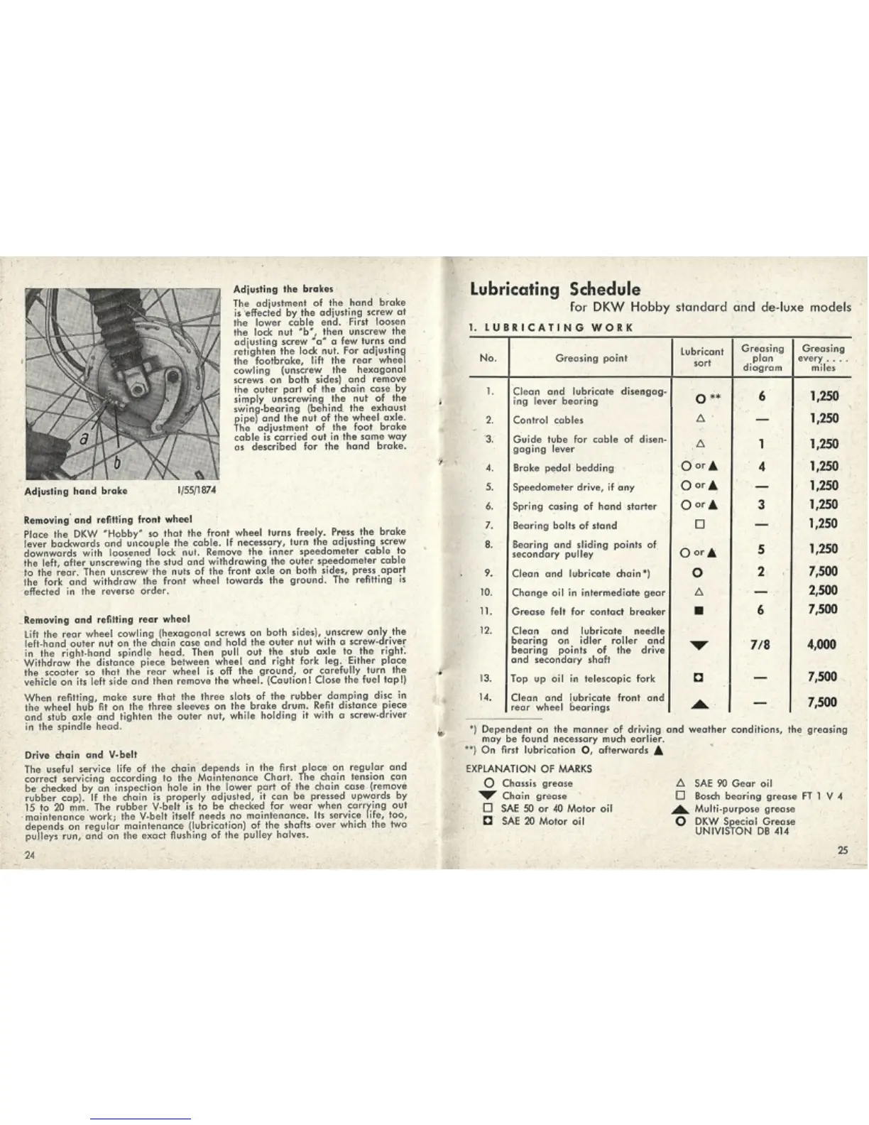 DKW Hobby - Brake Adjustment; Wheel Removal; Drive Chain and V-Belt; Lubrication