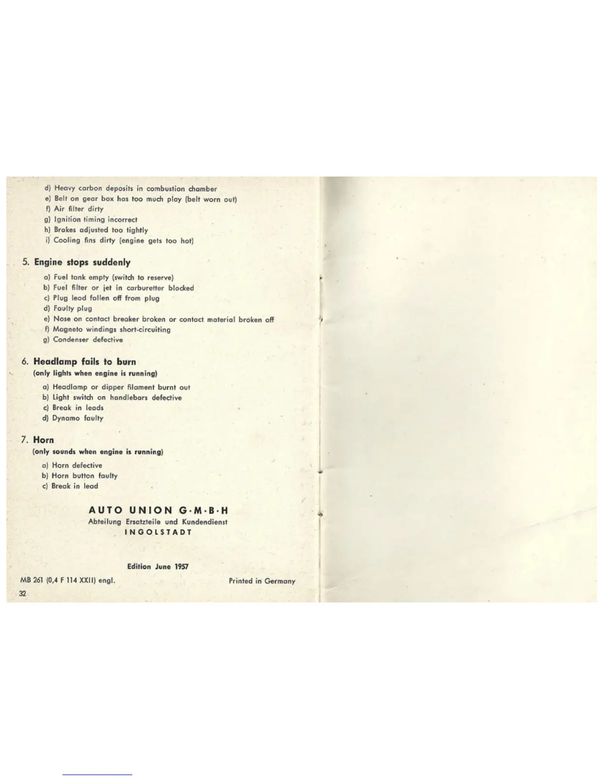 DKW Hobby - Engine Stops Suddenly; Headlamp Failure; Horn Malfunction